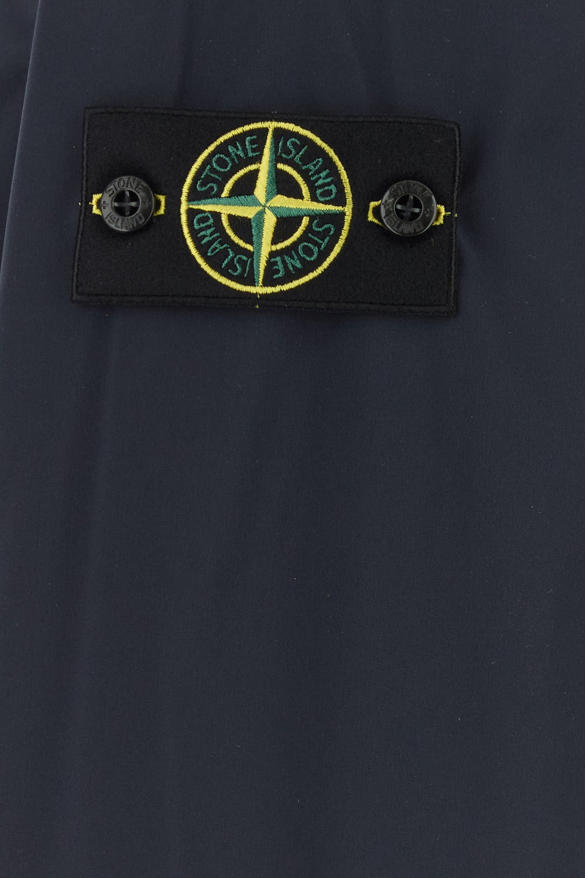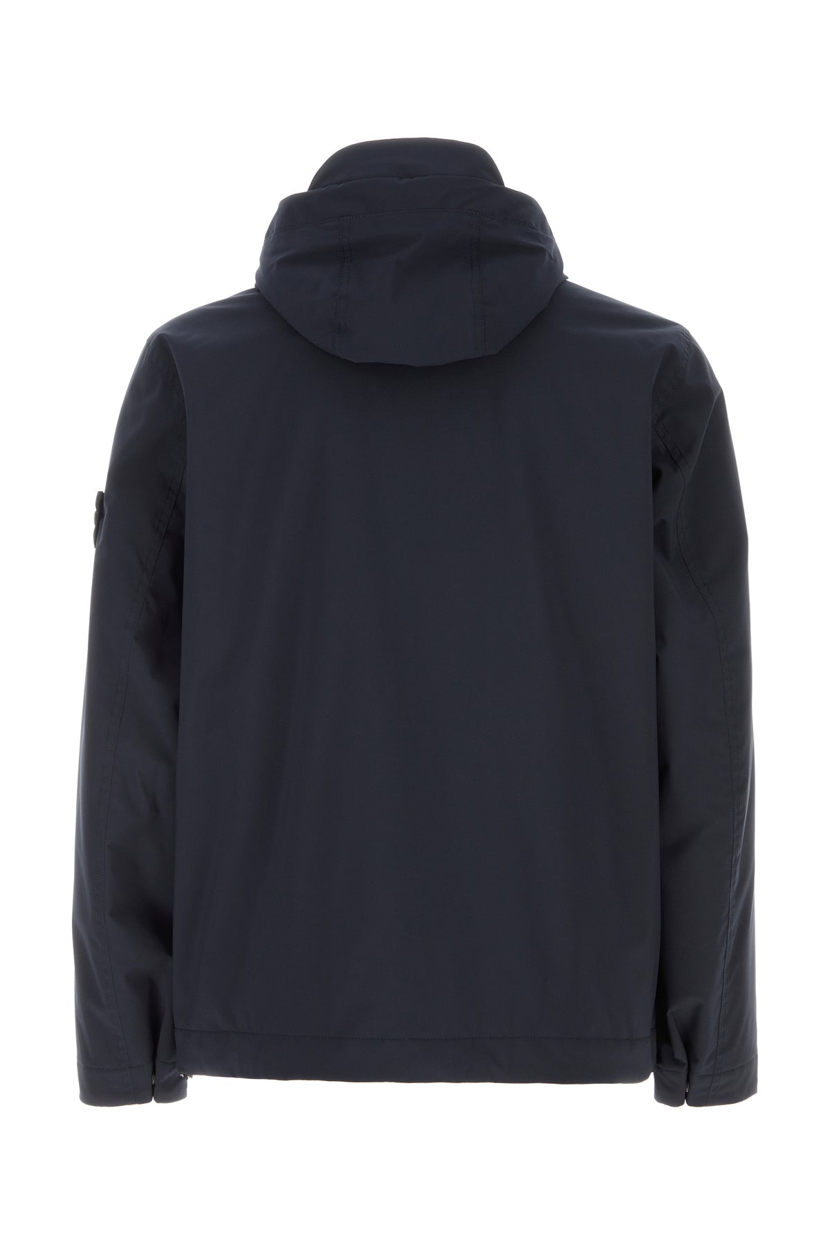 Padded jacket realized in stretch polyester enriched by detachable logoed label on the sleeve.