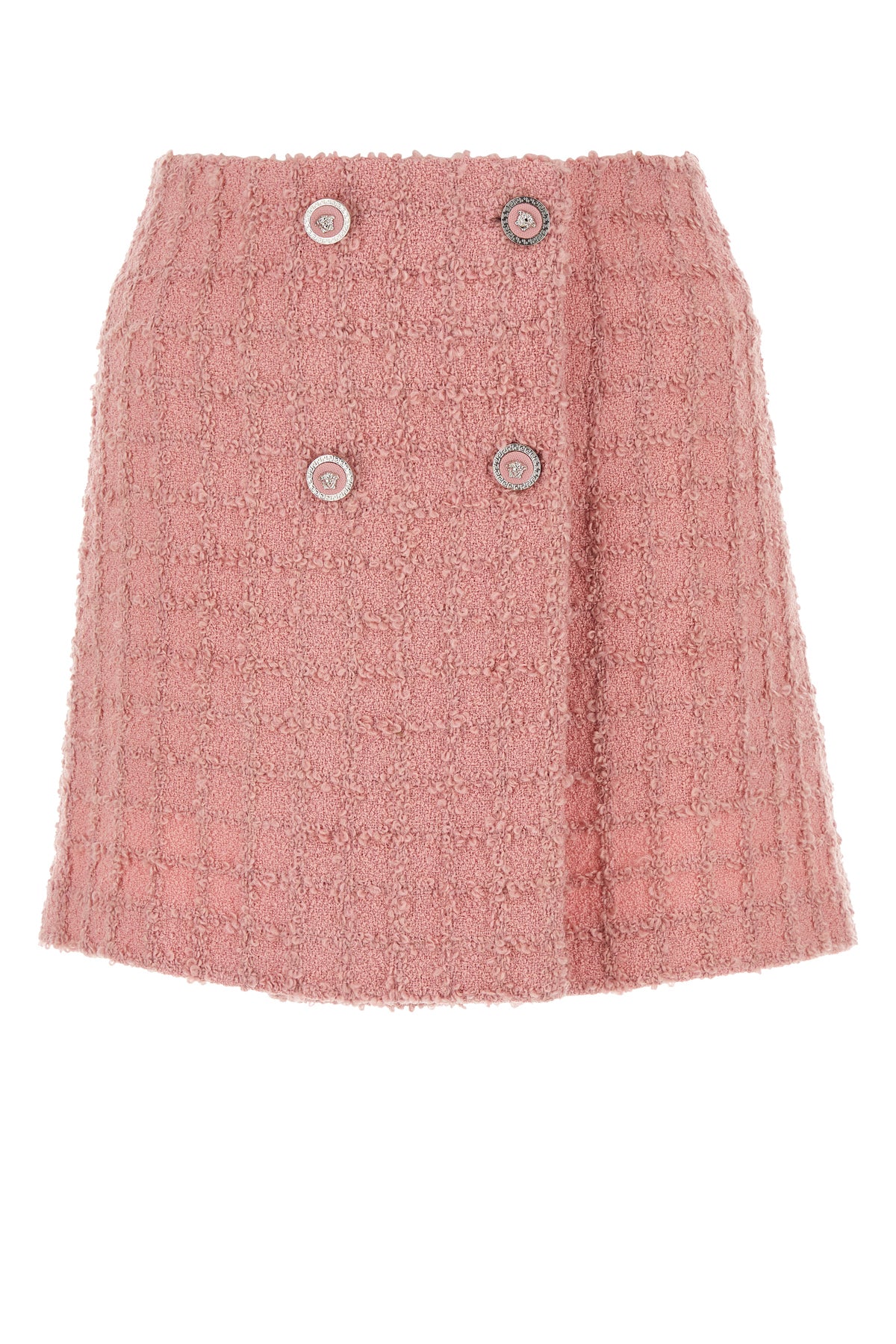 Mini skirt realized in wool blend bouclé enriched by iconic Medusa Head buttons at the front.