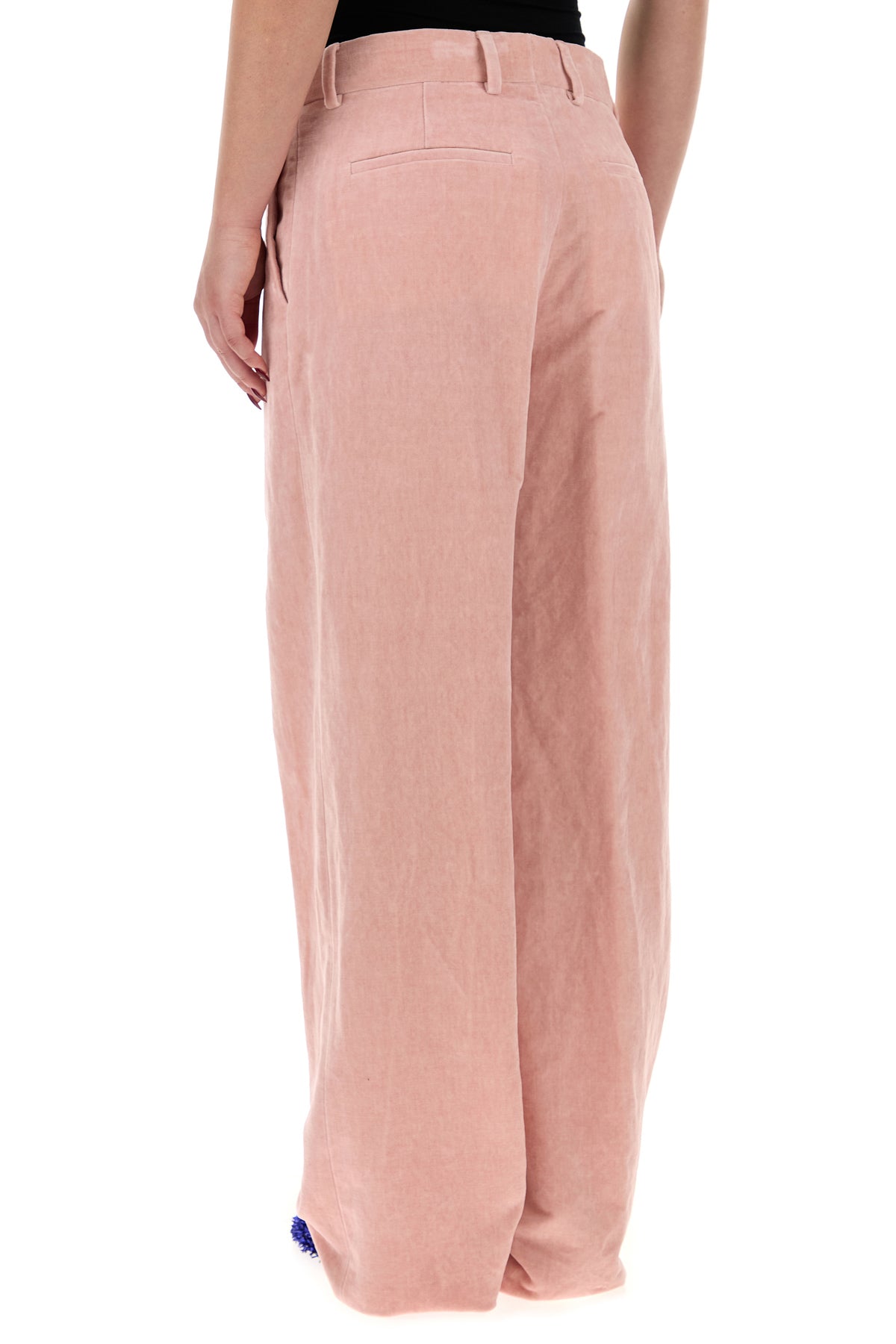 Pant realized in cotton and cashmere velvet characterized by central ironed pleats.