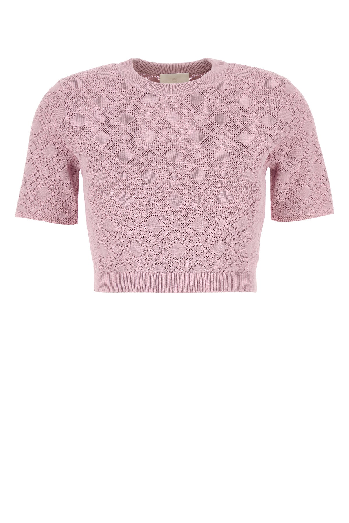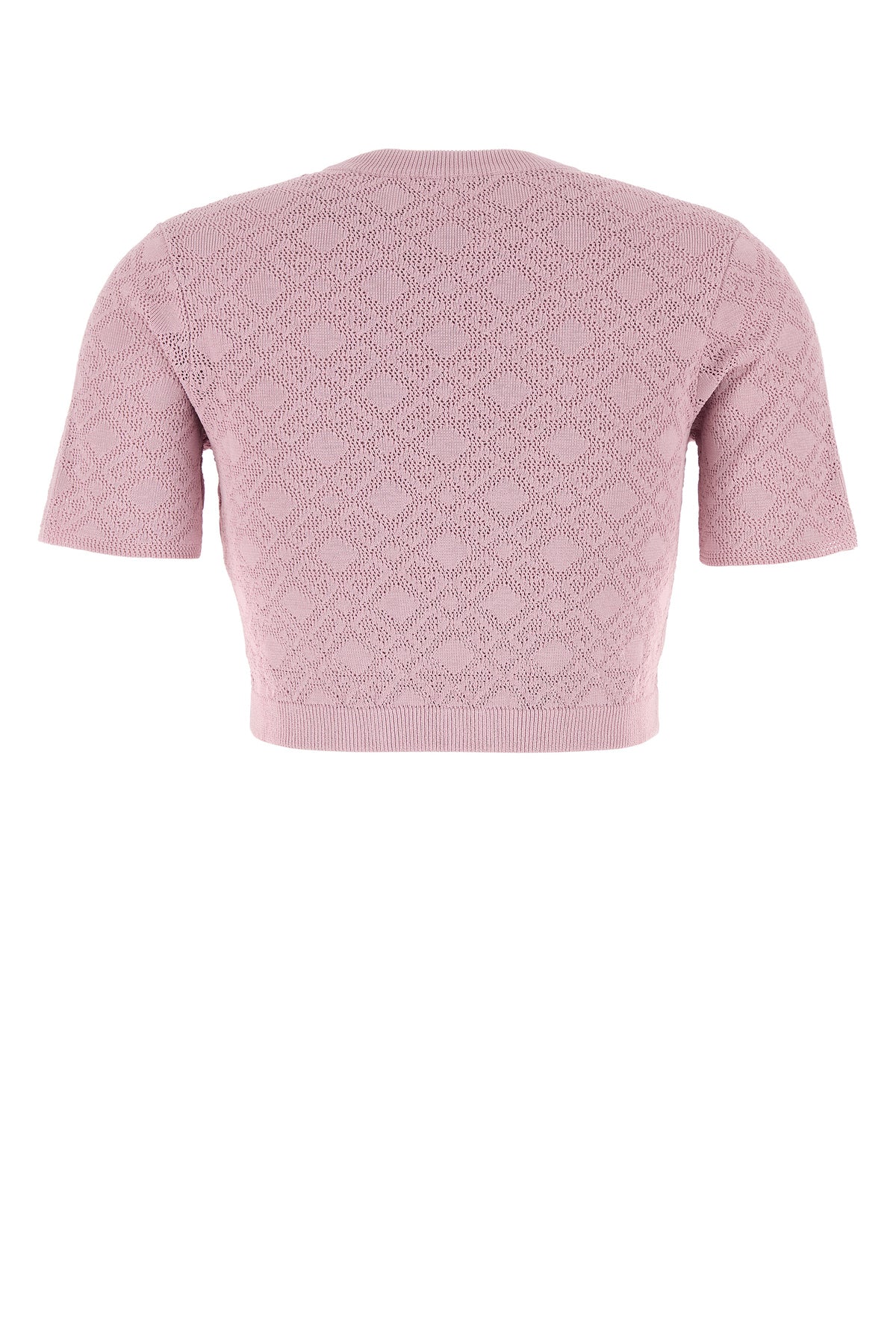 Short-sleeves sweater realized in viscose blend characterized by peculiar embroidery on the entire surface.