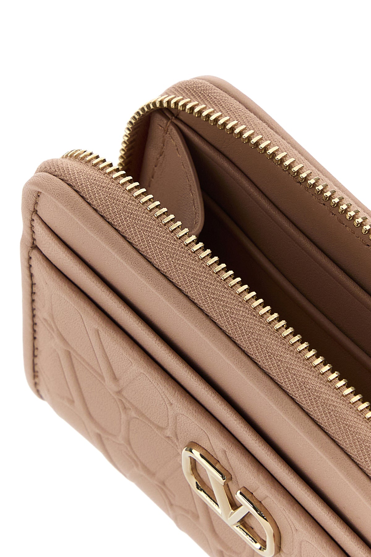 Wallet realized in leather characterized by VLogo Signature in relief on the entire surface enriched by VLogo Signature metal detail at the front.