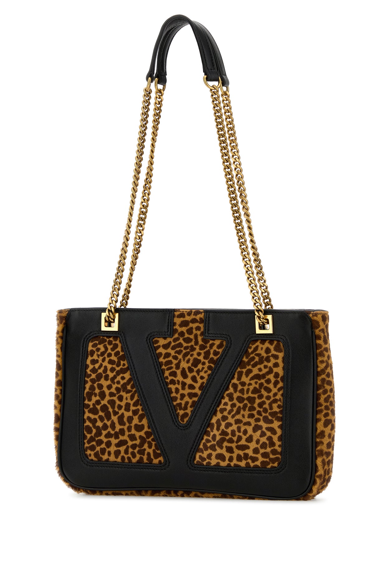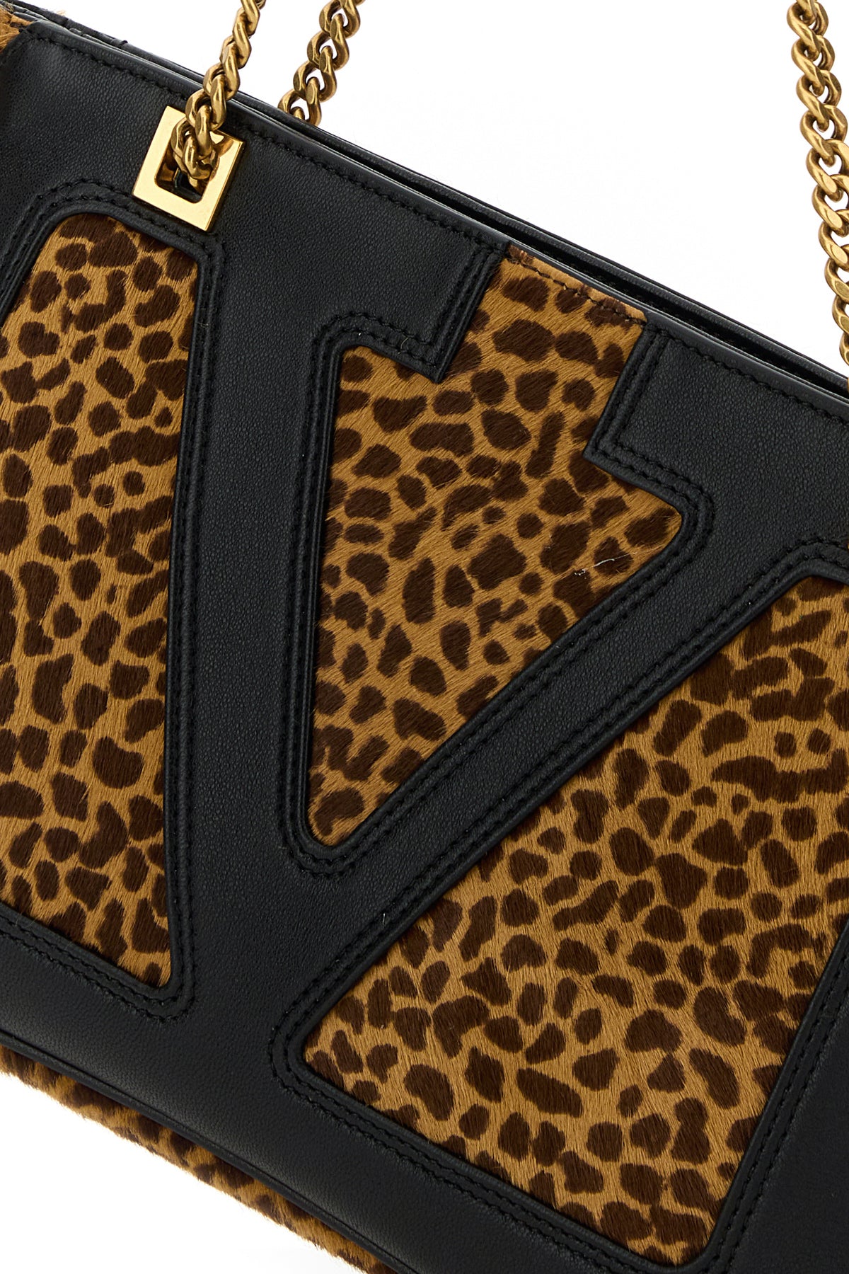 Shoulder bag realized in calf hair characterized by animal print on the entire surface enriched by VLogo Signature patch at the front.
