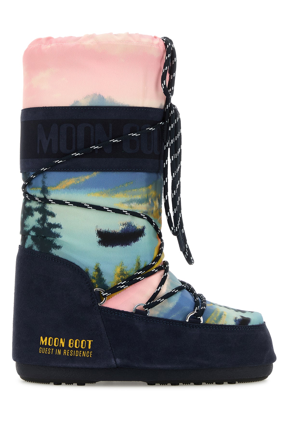 Printed canvas and suede Moon Boot x Guest In Residence Icon boots