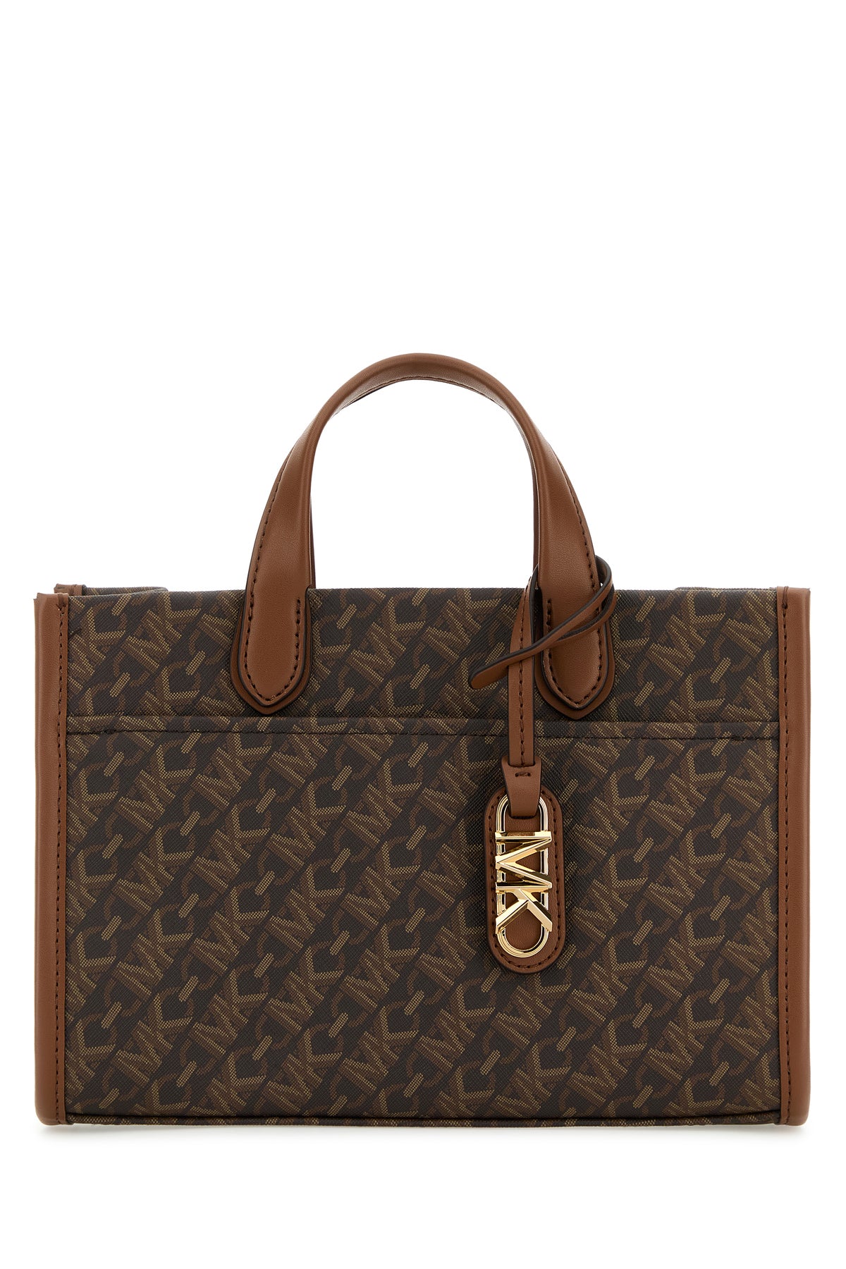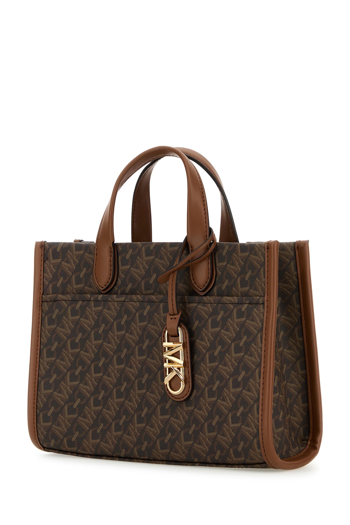 Handbag realized in canvas characterized by logoed print on the entire surface enriched by detachable leather and metal accessory.