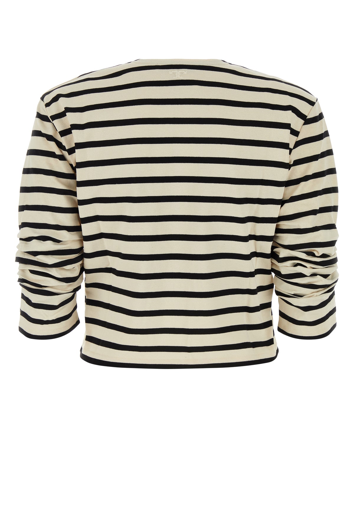 T-shirt realized in pure cotton characterized by stripes print on the entire surface.