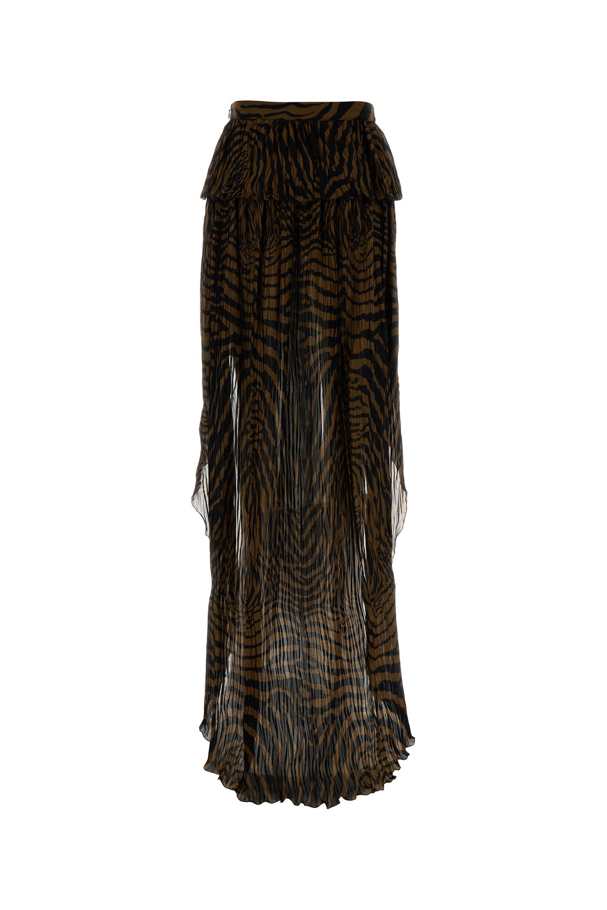 Pleated skirt realized in viscose crepe characterized by peculiar print on the entire surface.