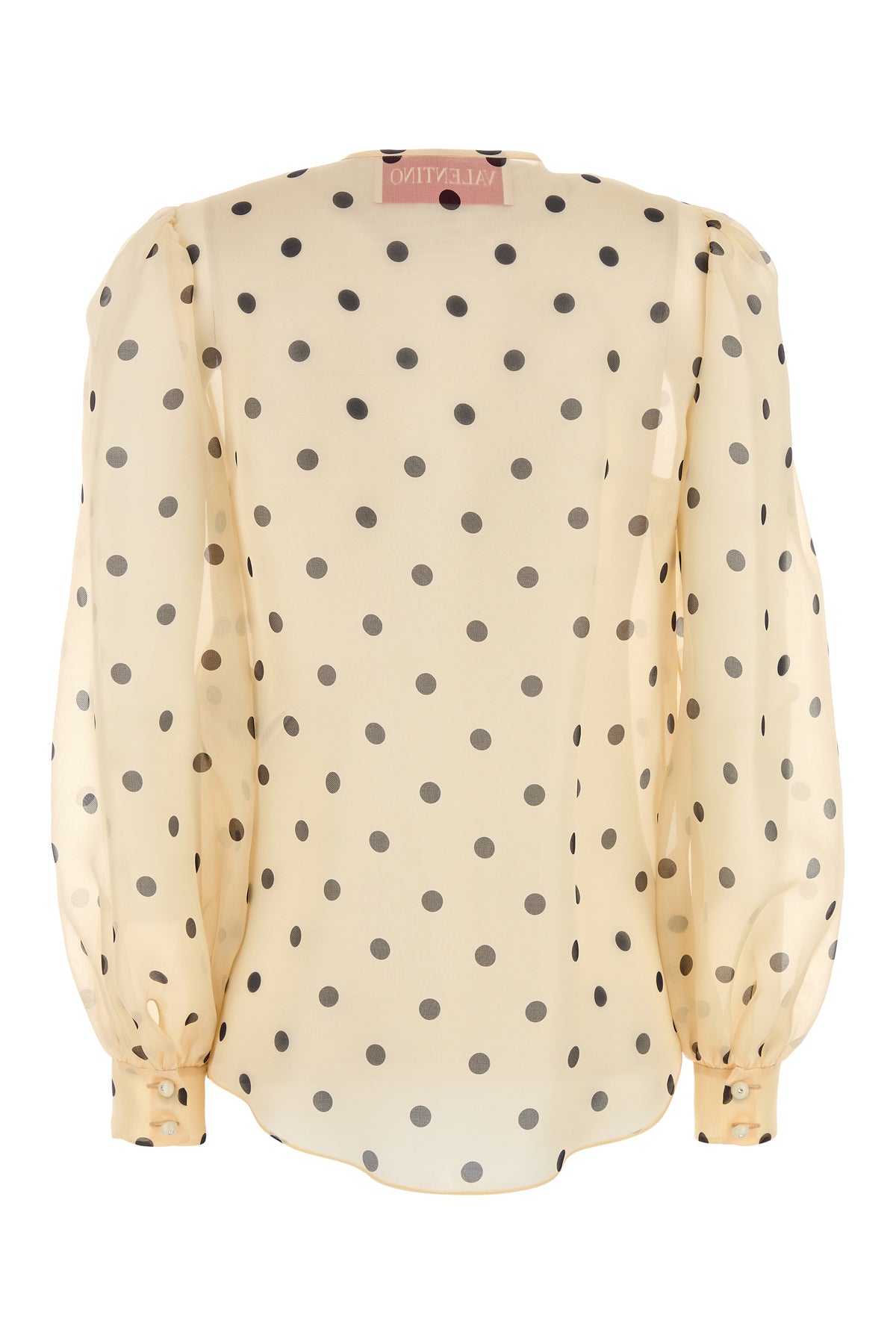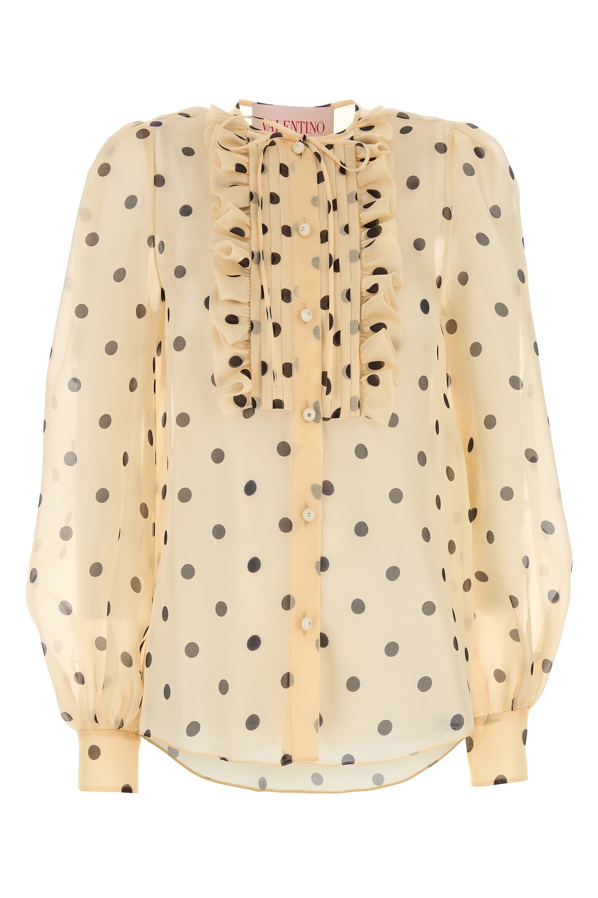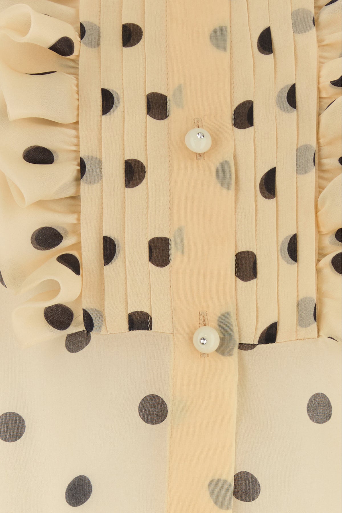 See-through shirt realized in pure silk organza characterized by polka doit print on the entire surface.