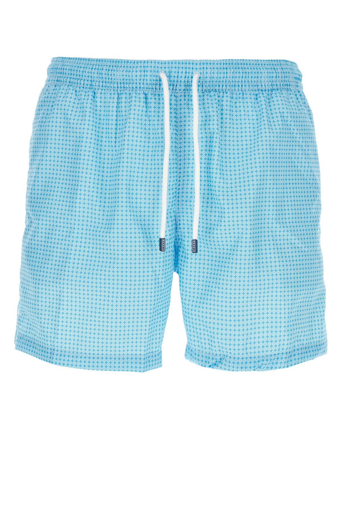 Swimming shorts realized in polyester characterized by peculiar print on the entire surface enriched by logoed label at the back.