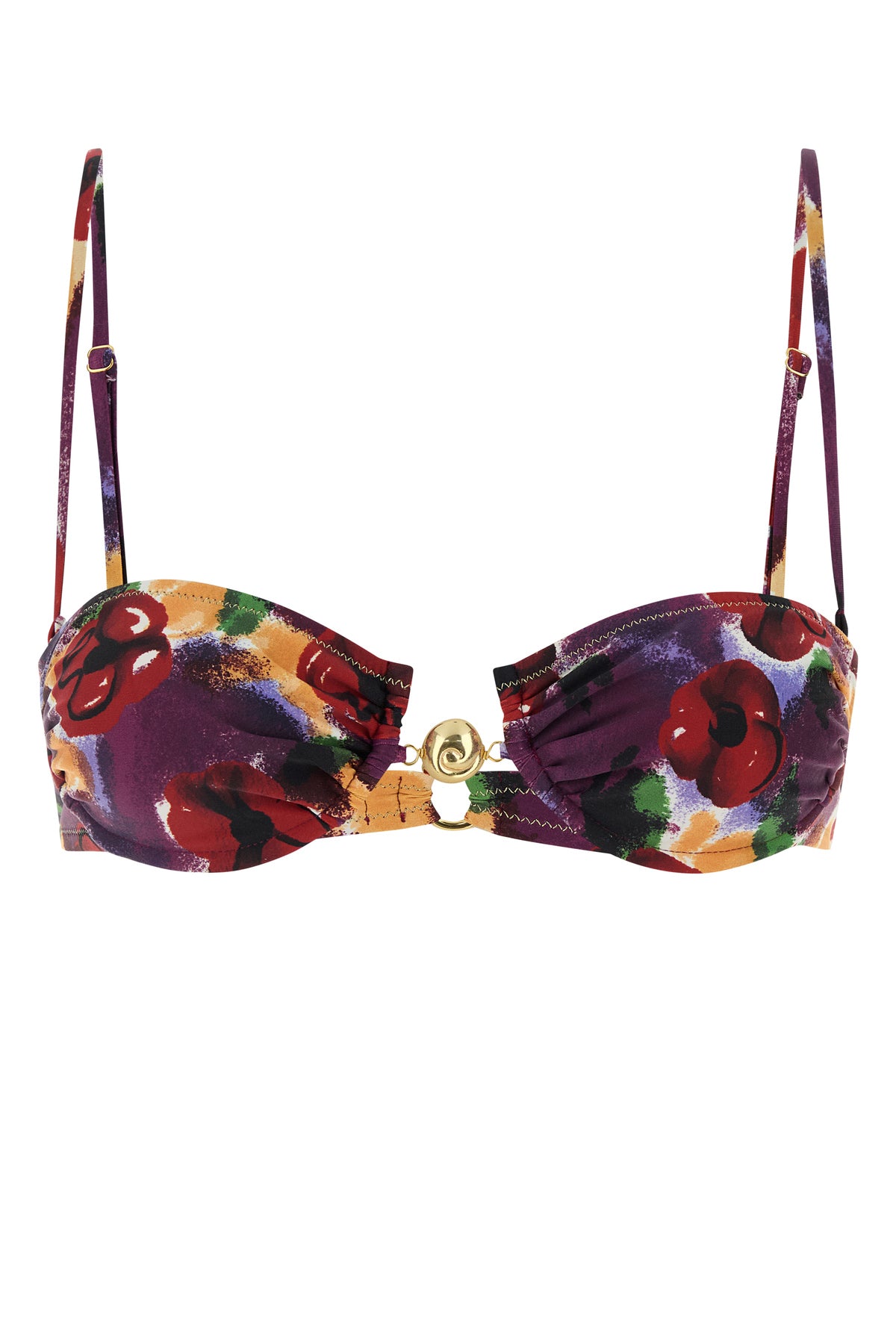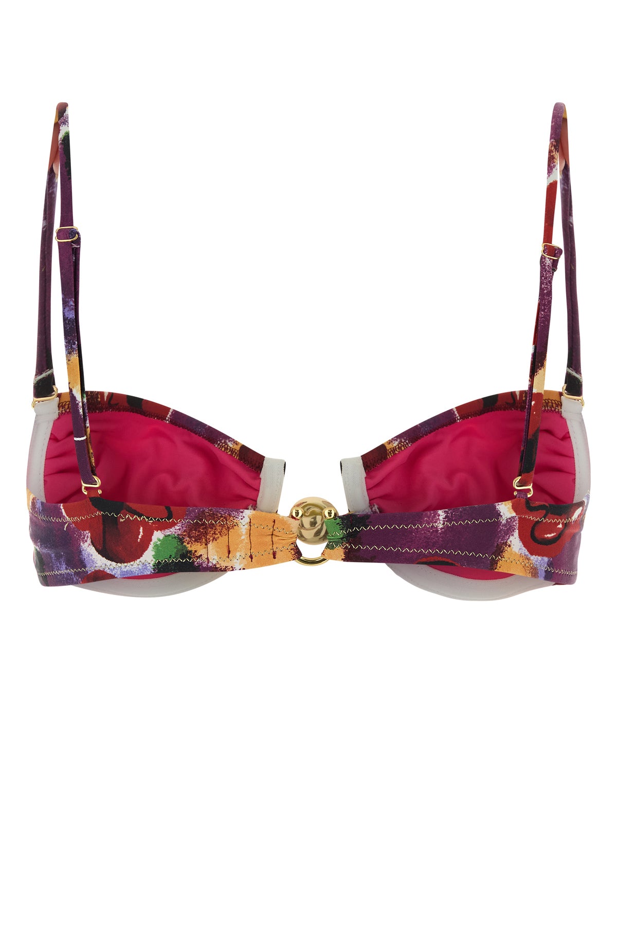 Balcony bikini top realized in stretch recycled nylon characterized by floral print on the entire surface enriched by metal detail at the front.