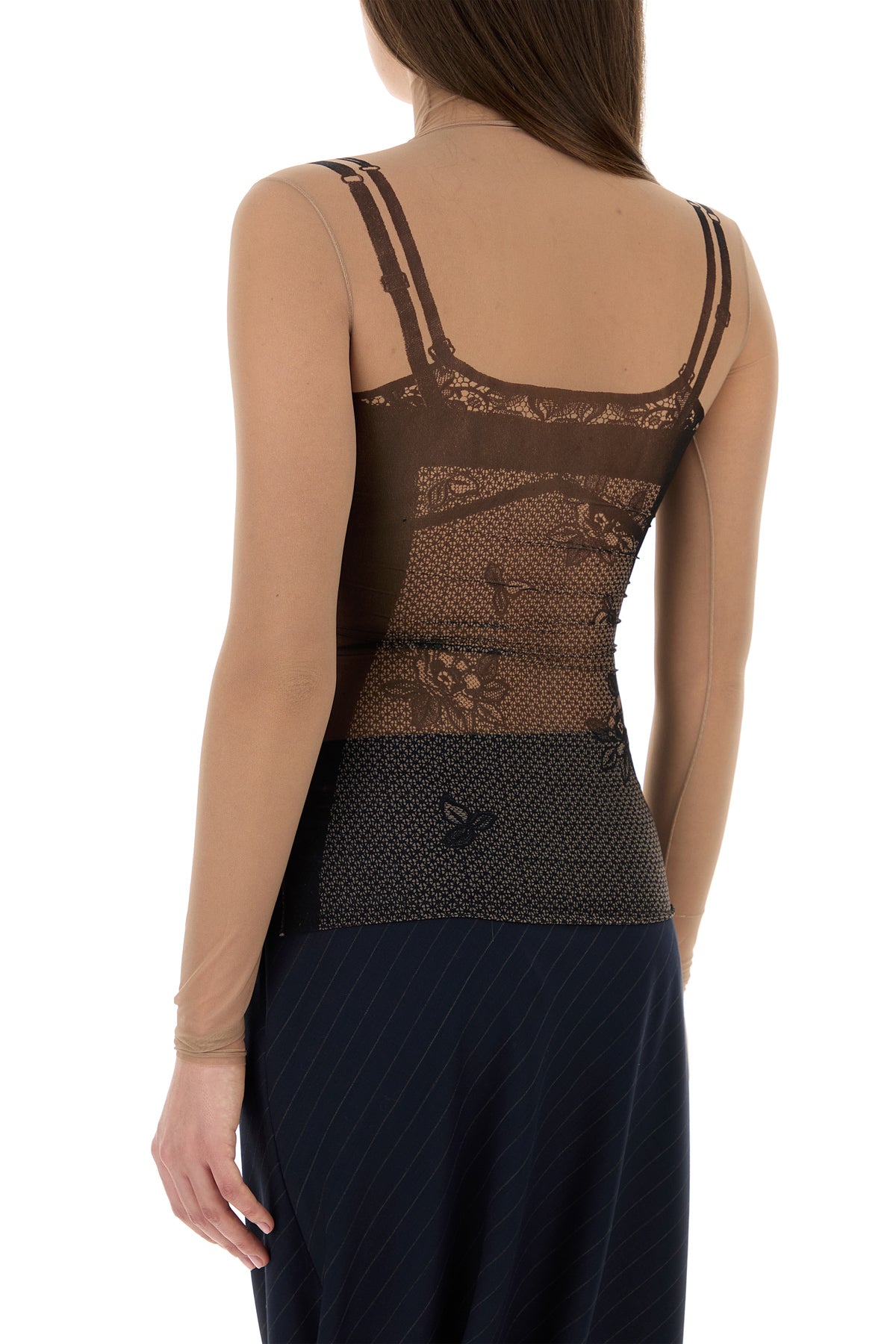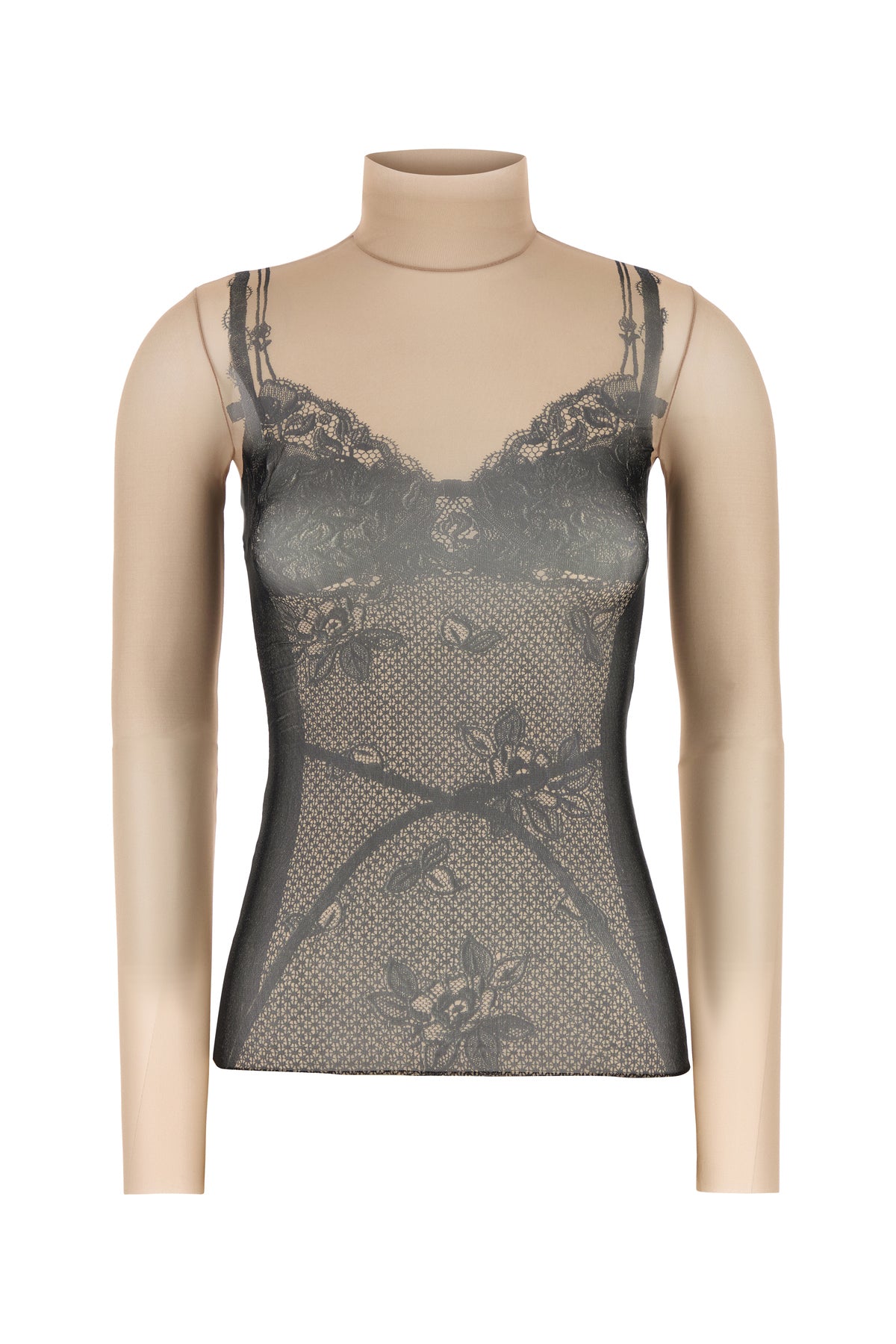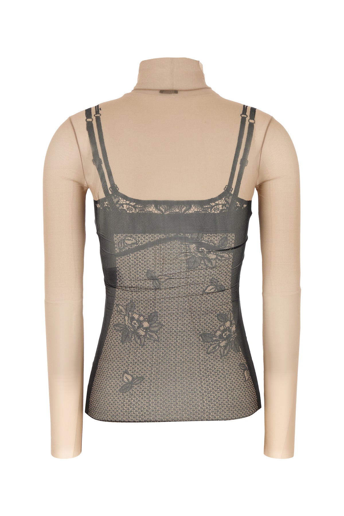 Top realized in stretch tulle characterized by Trompe L'œil print on the entire surface.