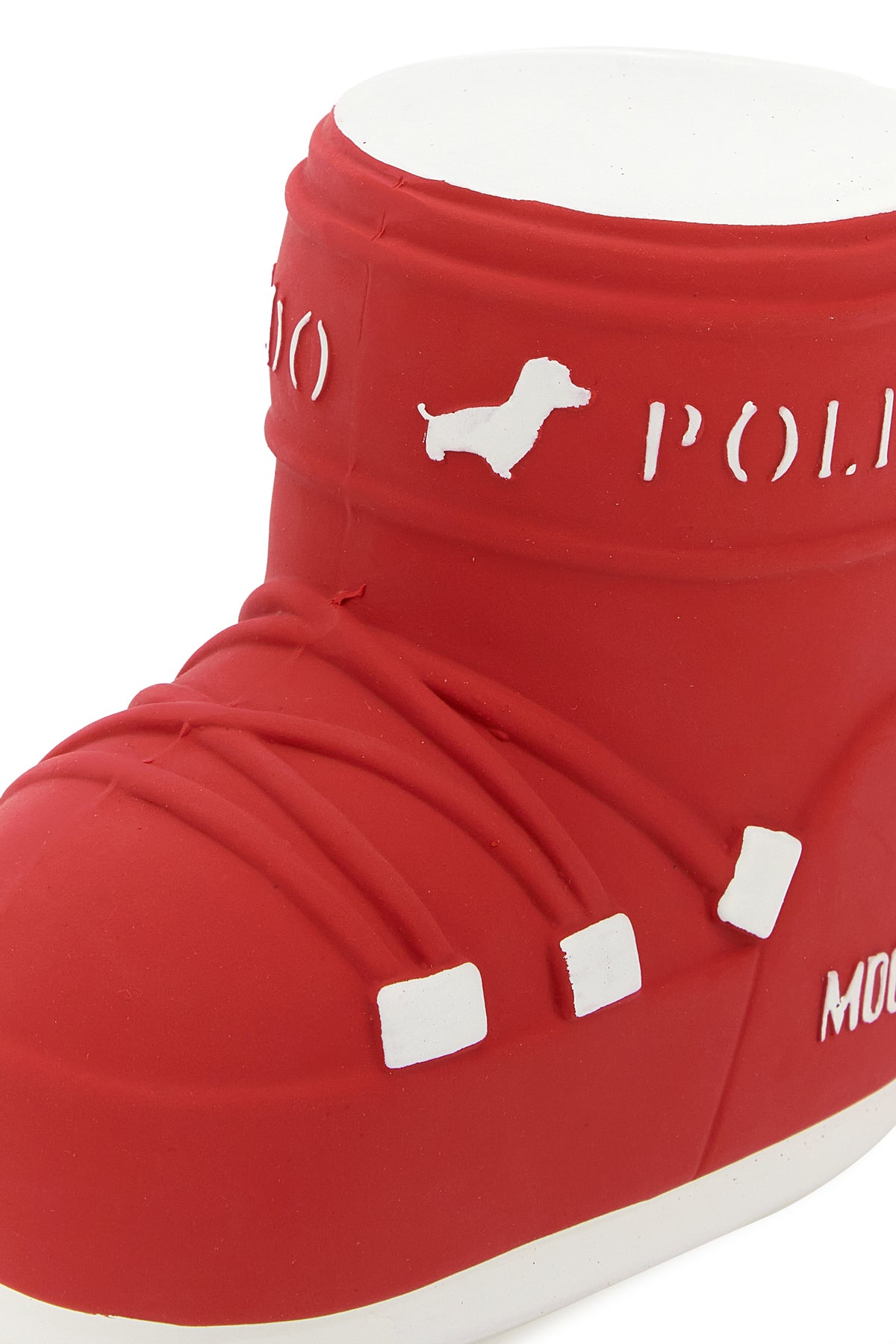 Red rubber Poldo Dog Couture x Moonboot dogs toy