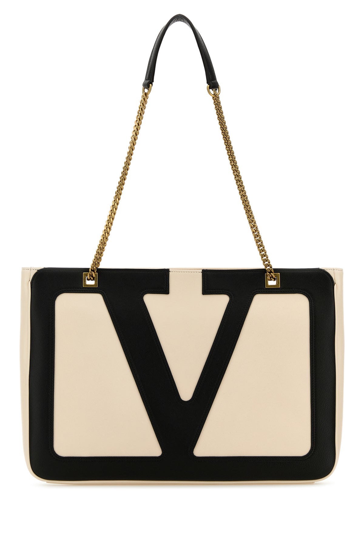 Shopping bag realized in slightly pebble leather enriched by contrasting VLogo Signature patch at the front.