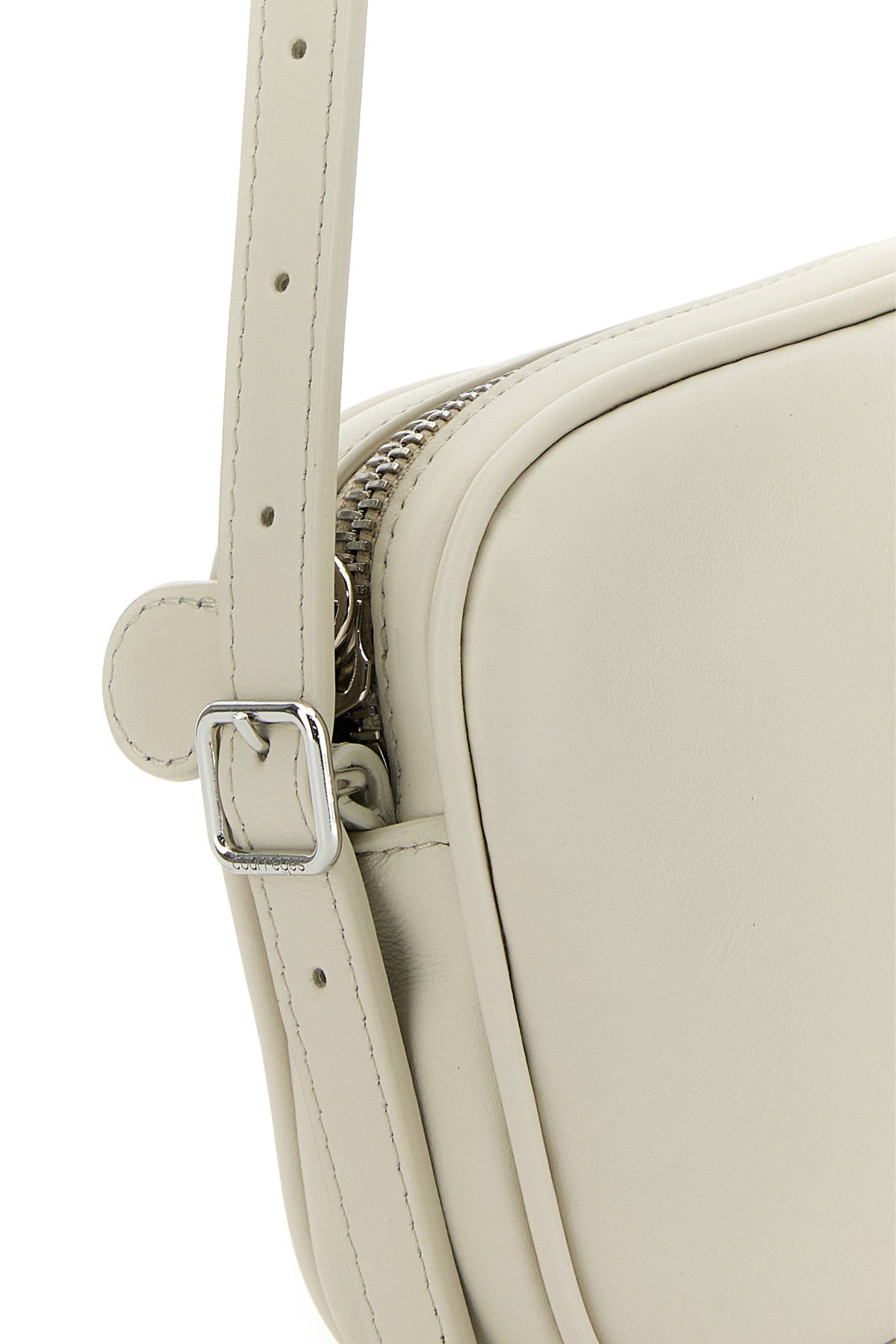 Shoulder bag realized in smooth leather enriched by contrasting logoed patch at the front.