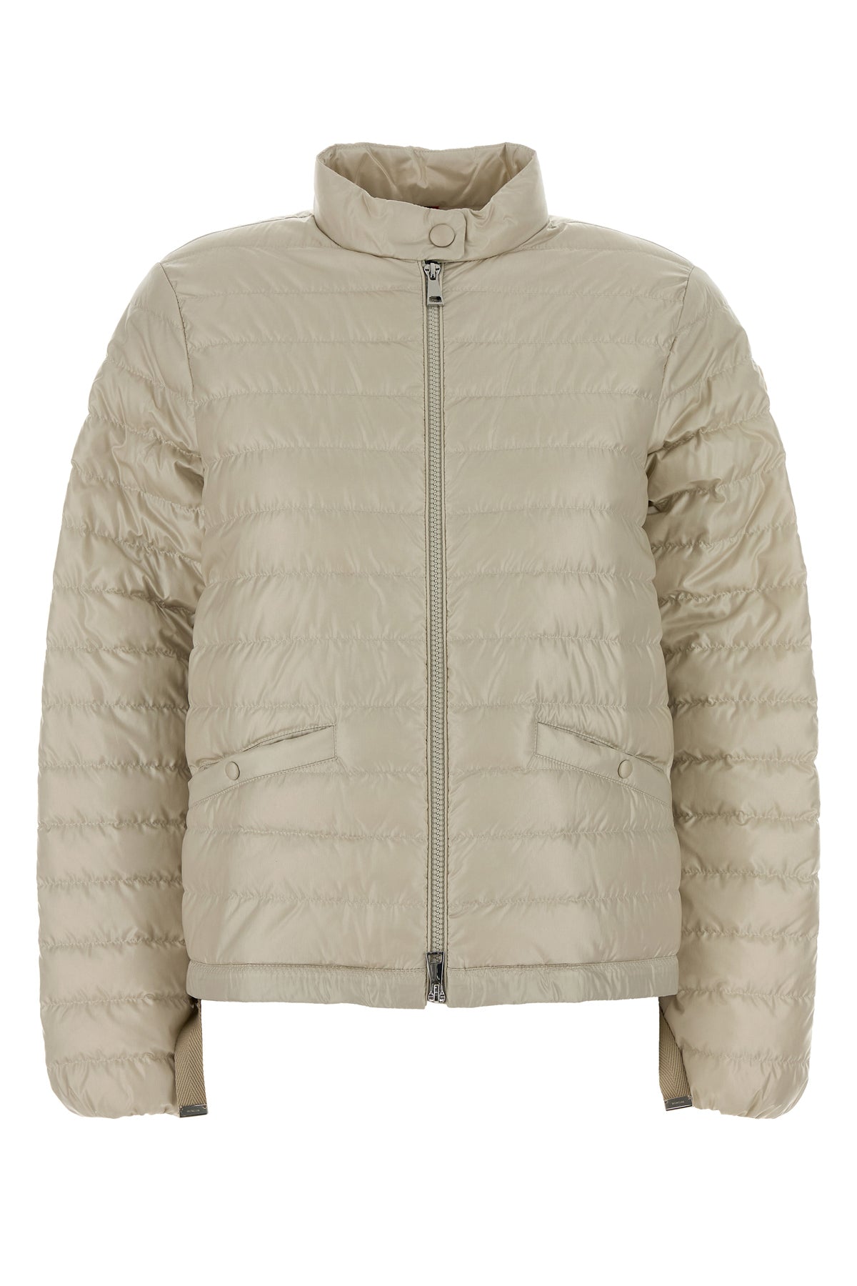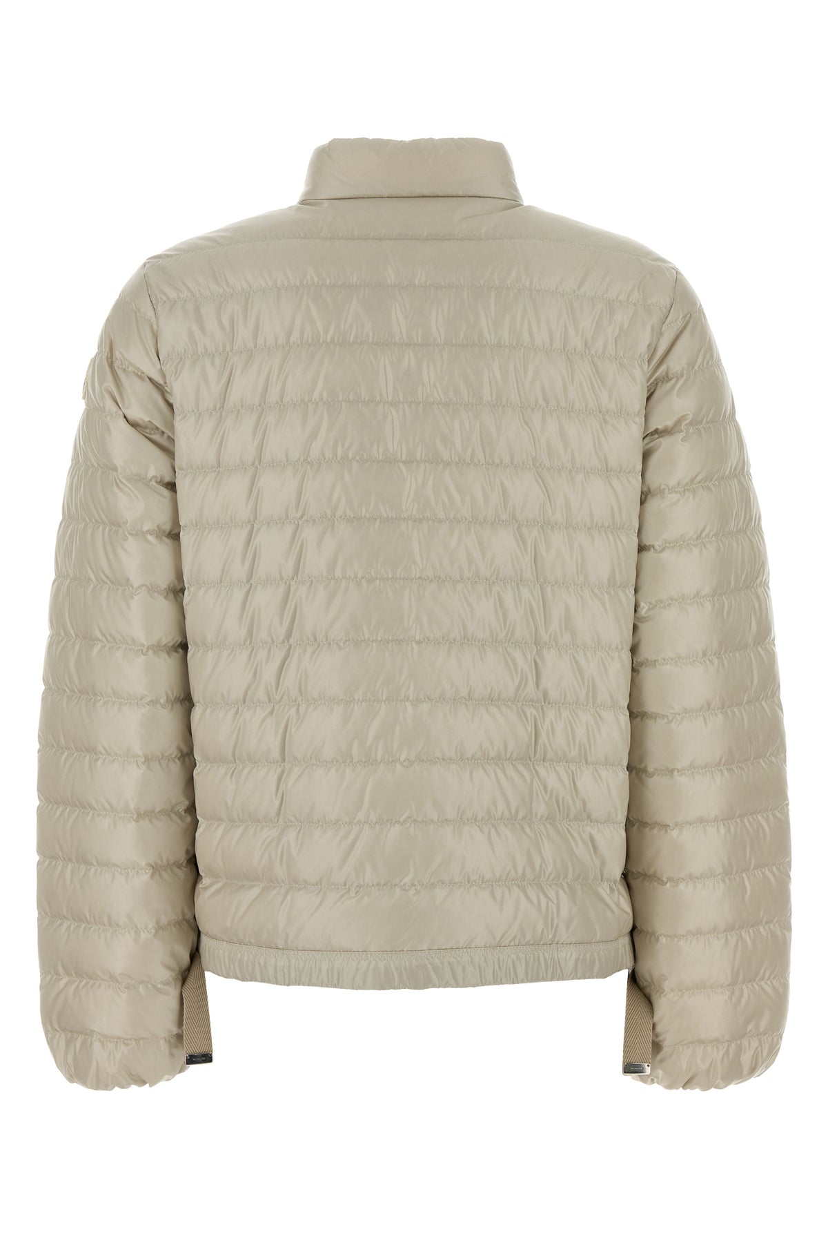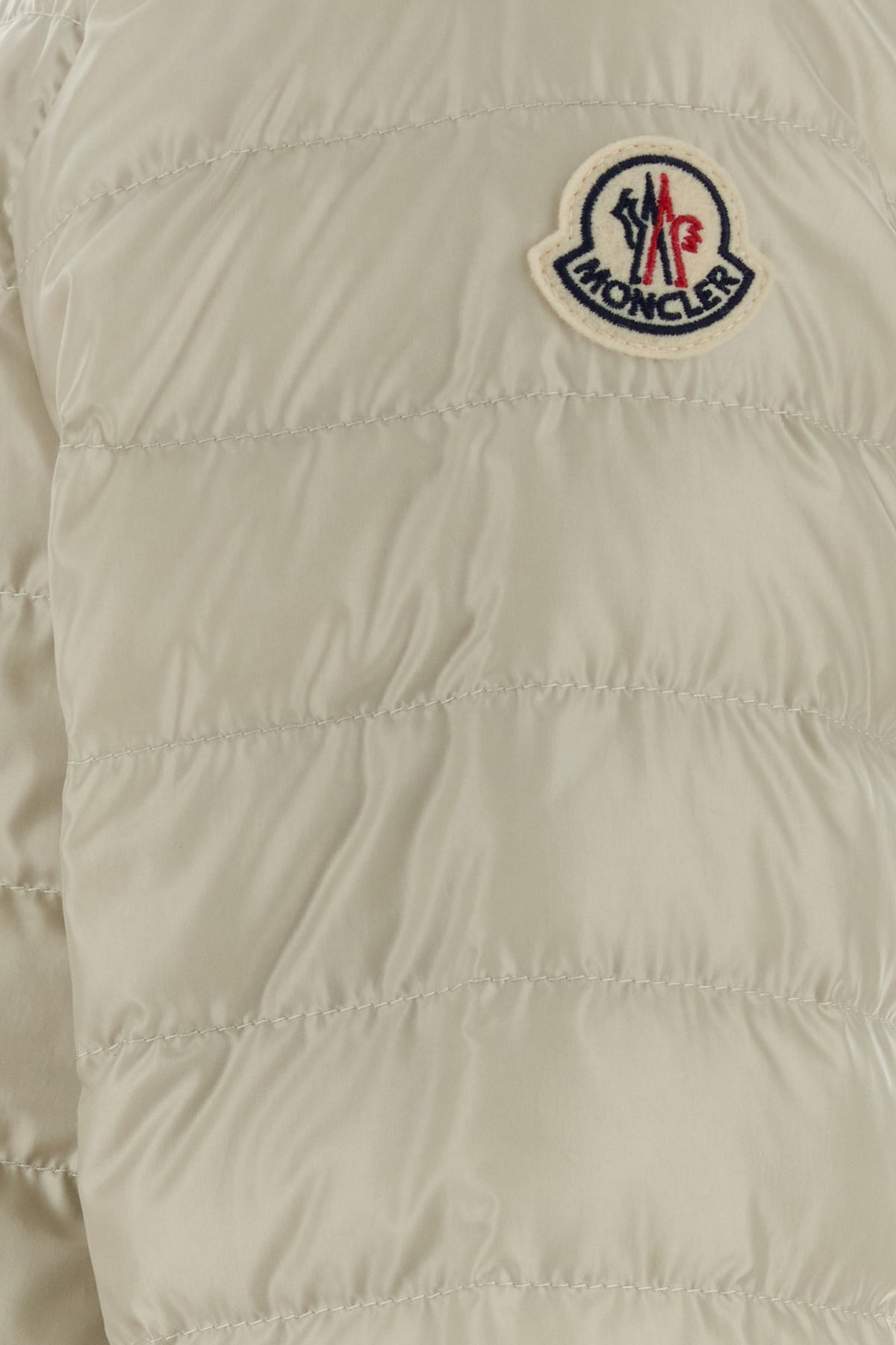 Down jacket realized in quilted nylon enriched by contrasting logoed patch on the sleeve.
