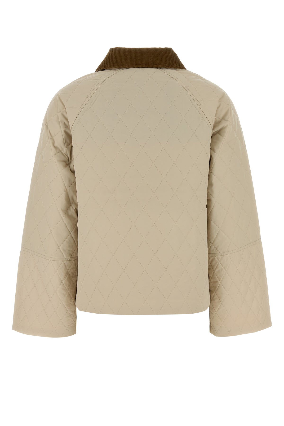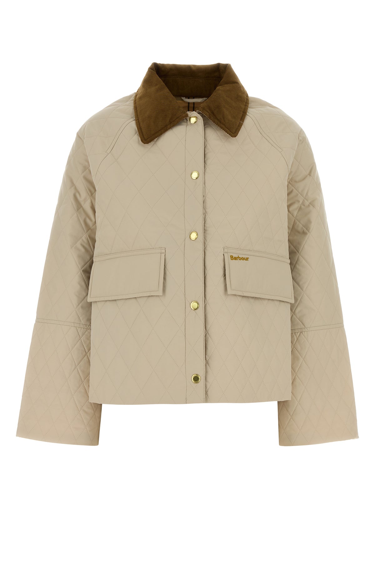 Padded jacket realized in quilted polyester characterized by embroidered logo at the front.