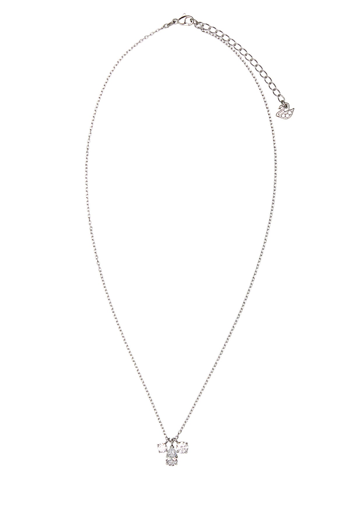 Necklace realized in silver-tone plated metal enriched by rhinestones charm.