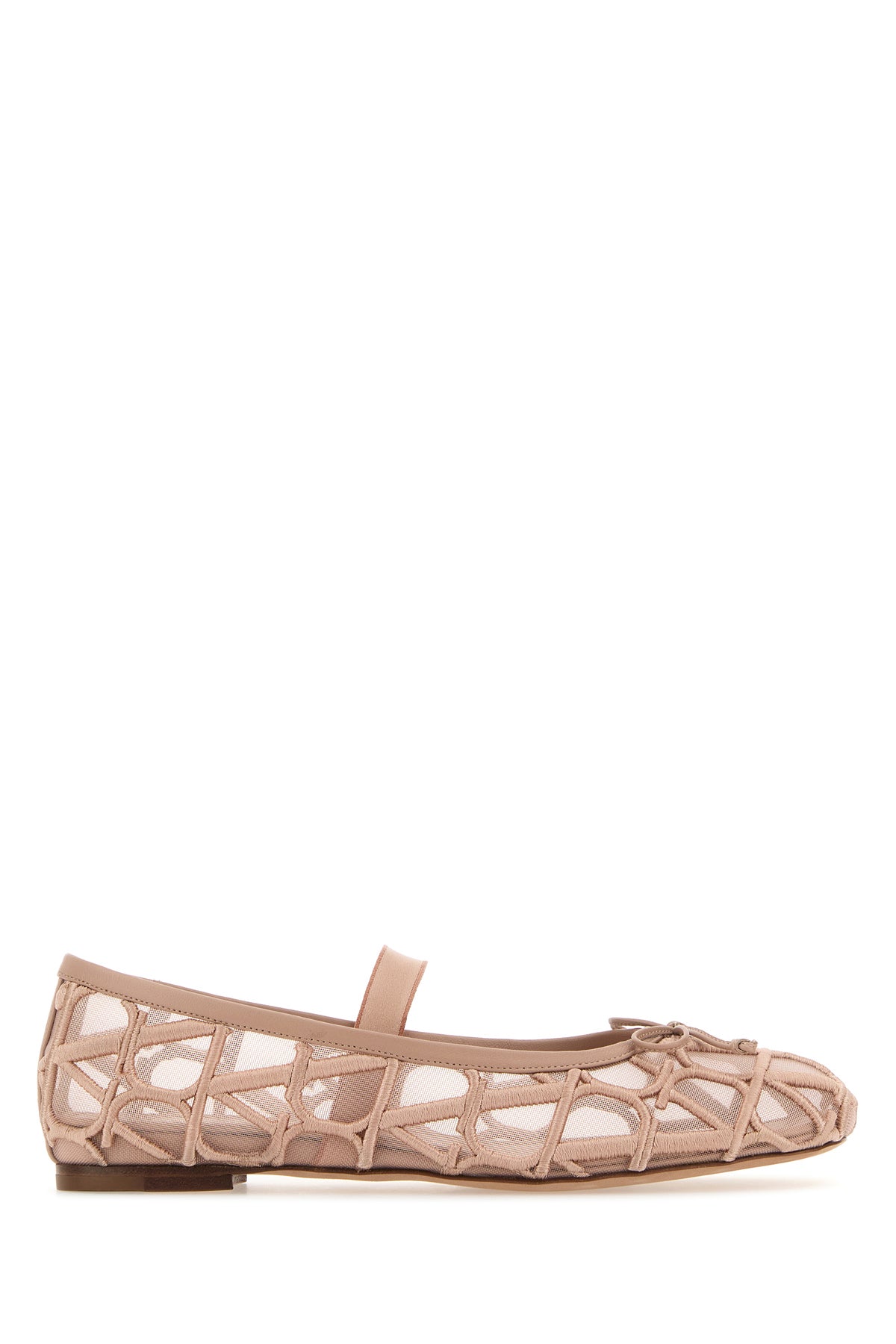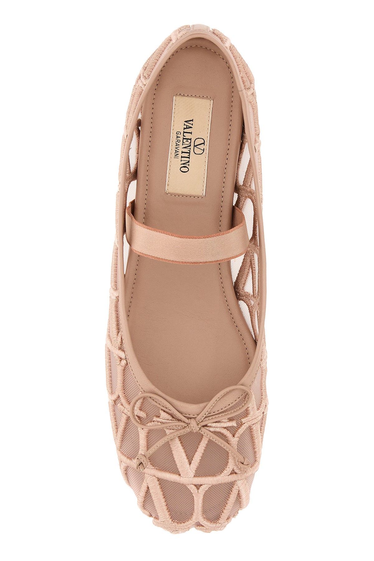Ballerinas realized in Toile Iconographe and mesh enriched by decorative bow on the toe.