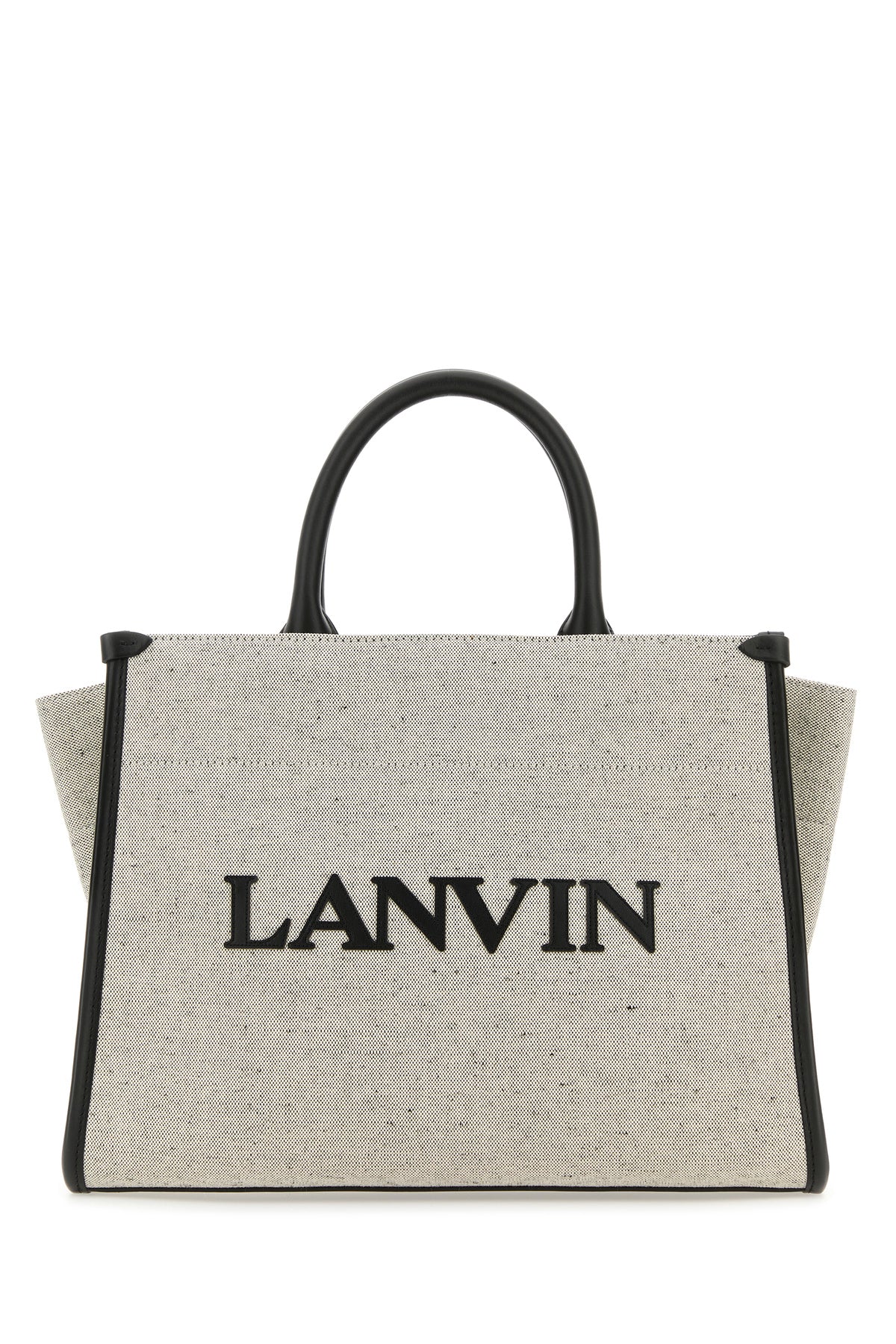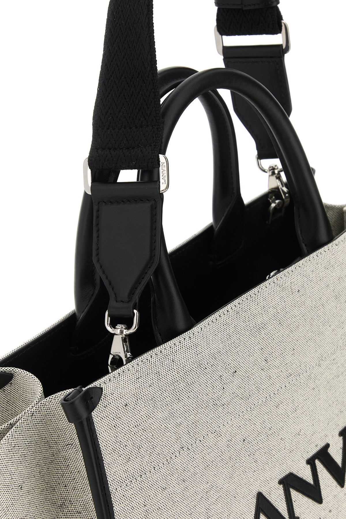 Shopping bag realized in pure cotton canvas with smooth leather inserts on the trimmings enriched by logoed patch at the front.