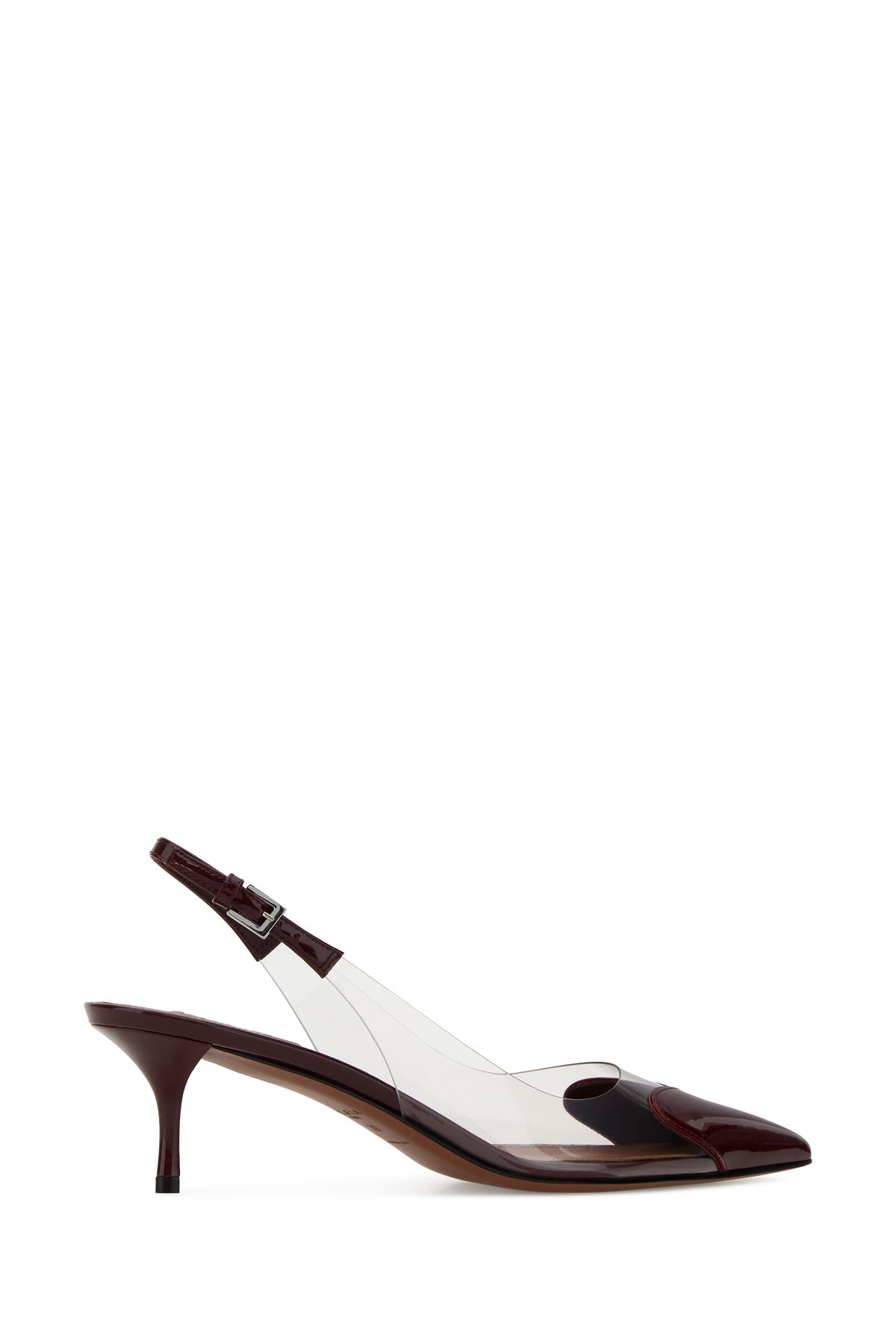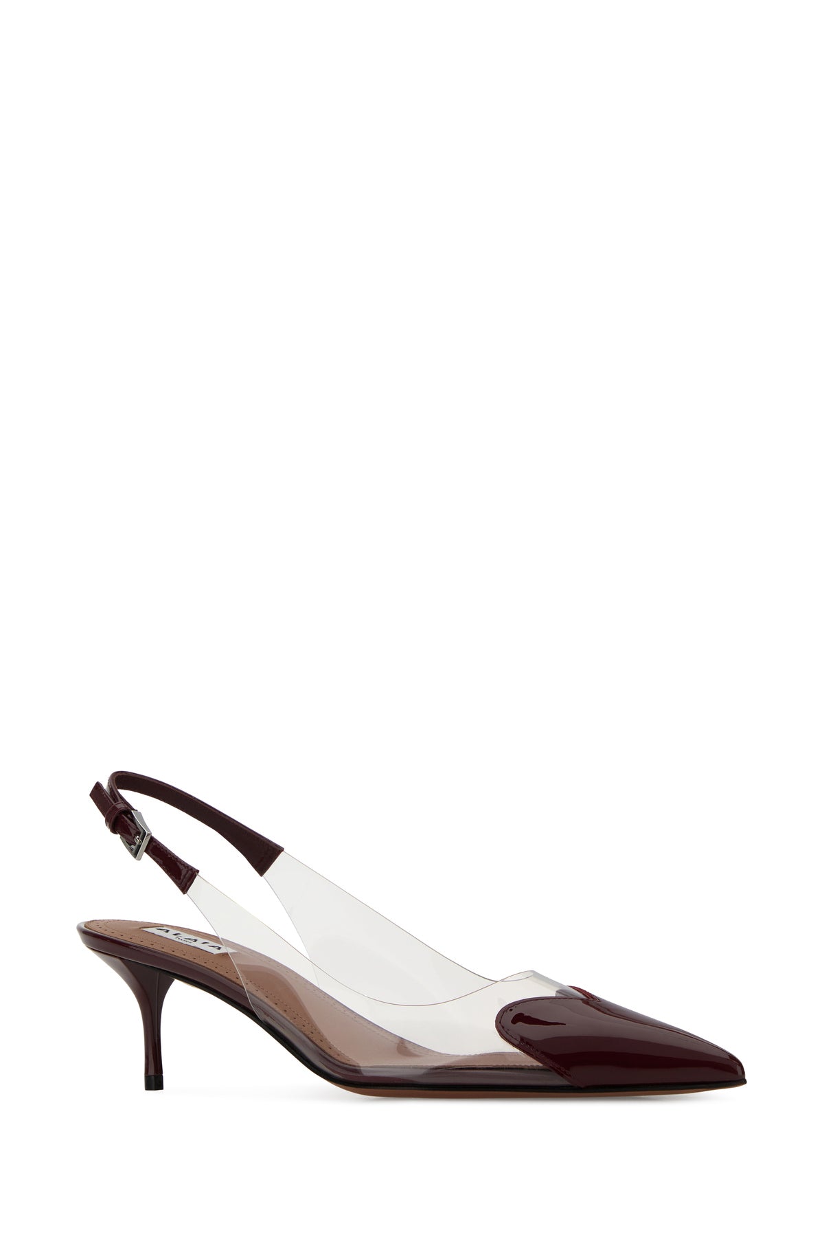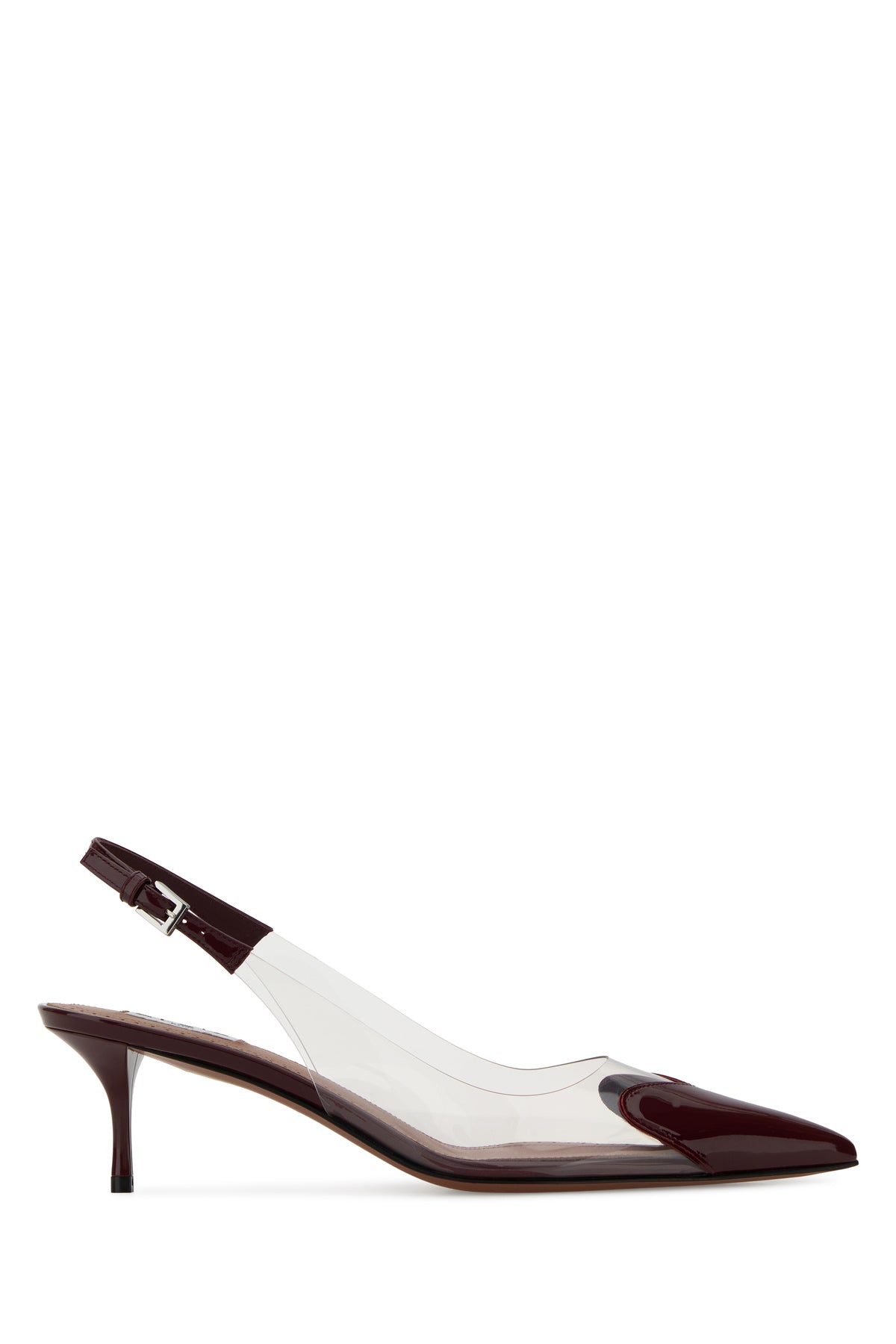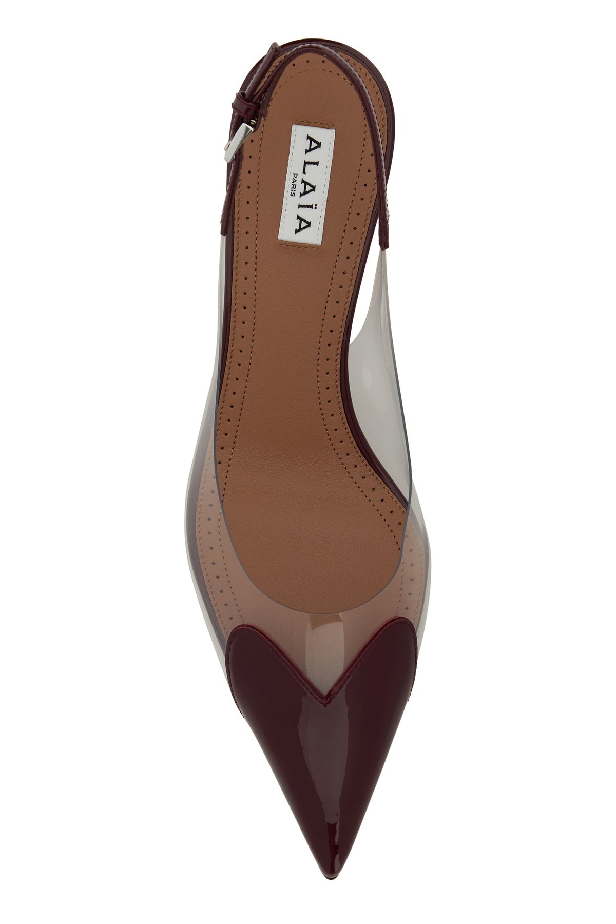 Slingback realized in PVC and patent leather enriched by heart-shaped insert at the front.