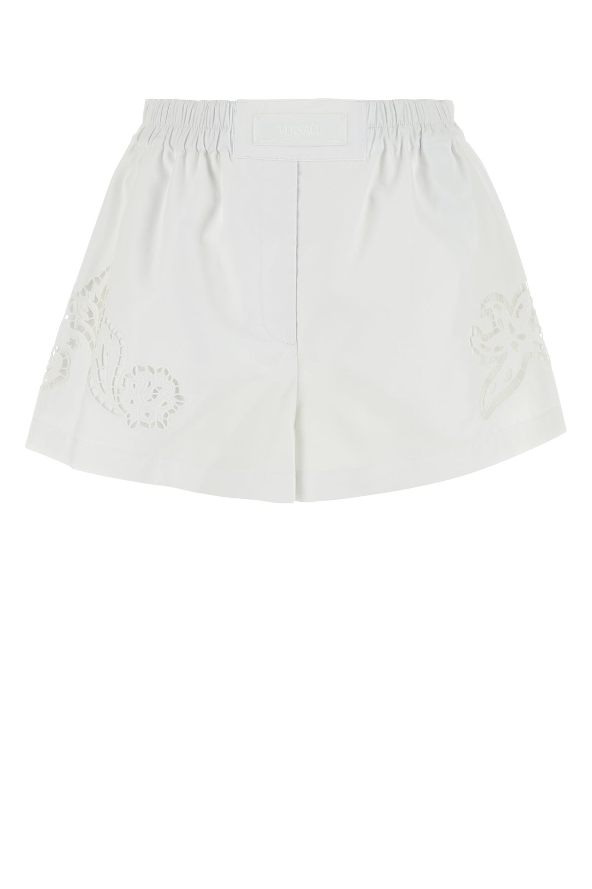 Shorts realized in pure cotton enriched by tonal lace inserts and tonal logoed label at the front.