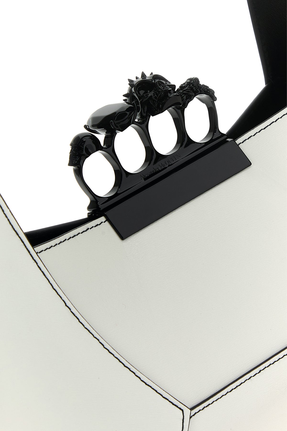 Handbag realized in smooth calf leather characterized by contrasting printed logo at the front enriched by jewel handle.