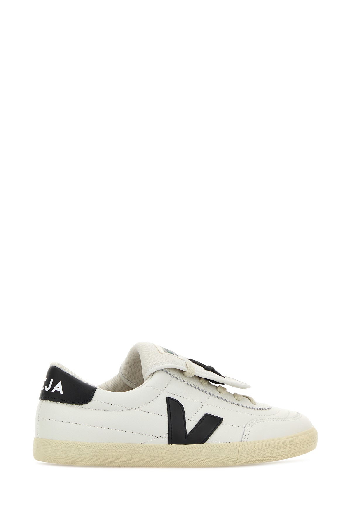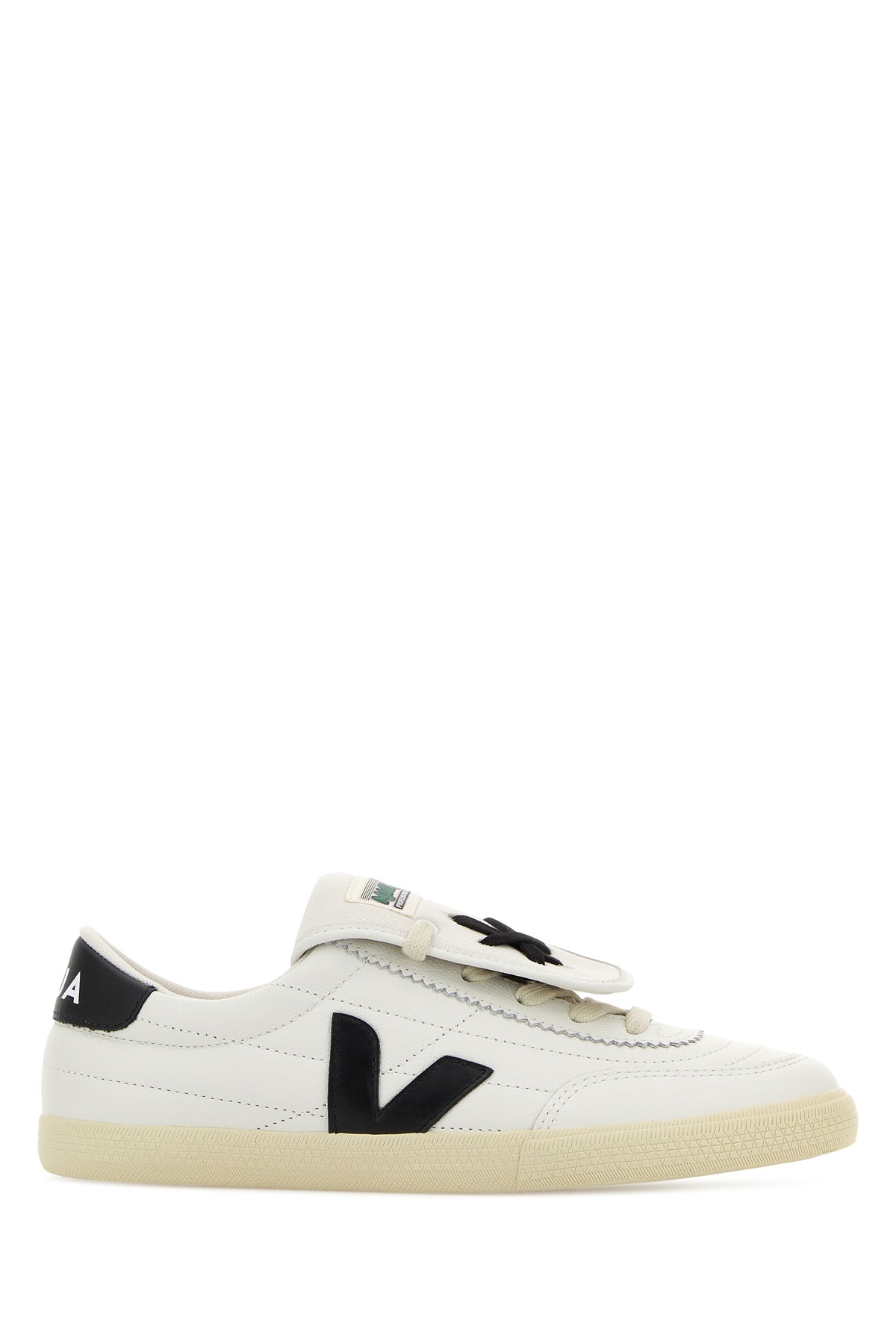 Sneakers realized in pebble leather characterized by printed logo on the contrasting heel enriched by contrasting V patches on the sides.