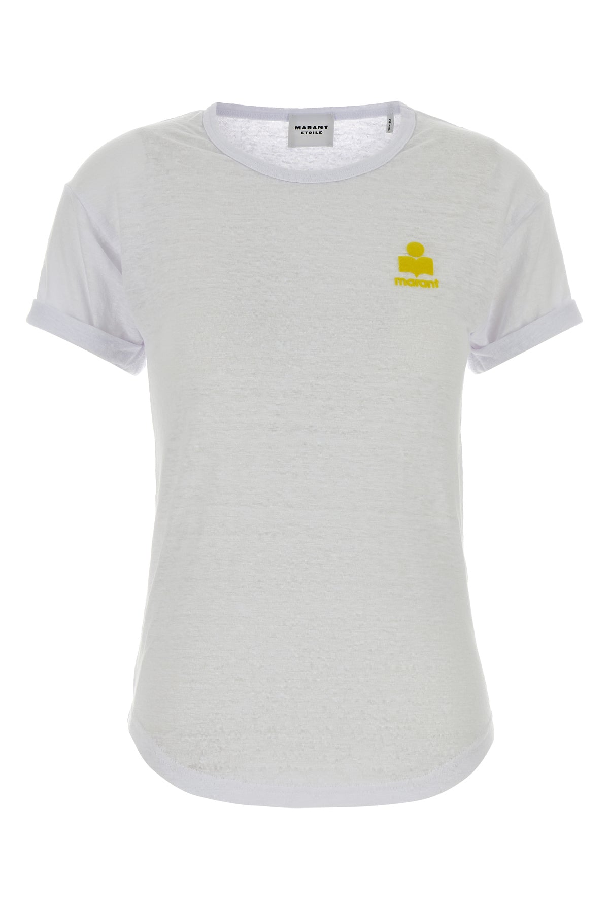 T-shirt realized in pure linen characterized by flocked printed logo on the chest.