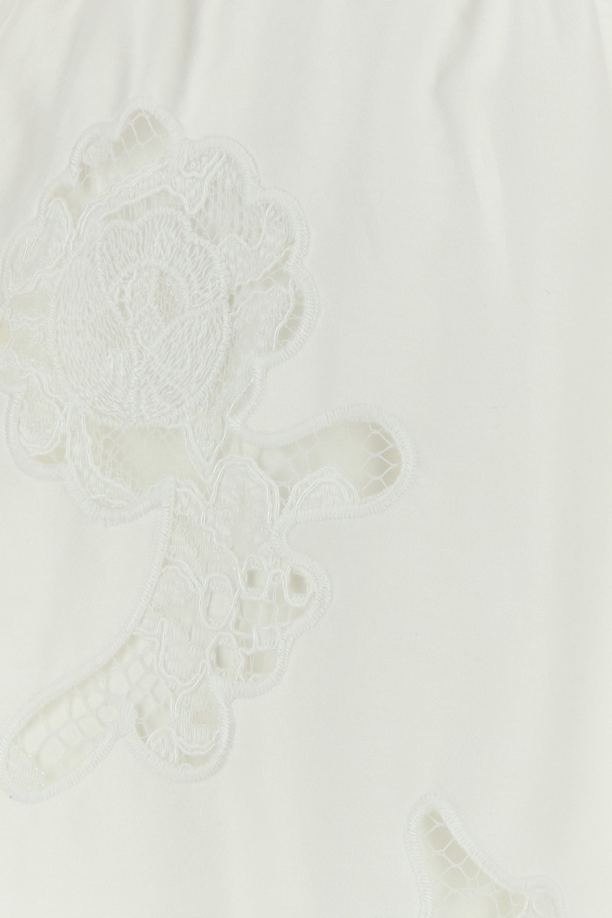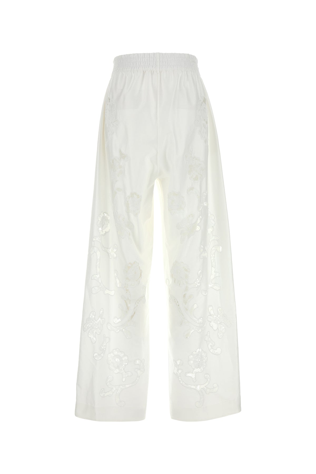 Wide-leg pant realized in poplin characterized by peculati tonal embroidery on the entire surface.
