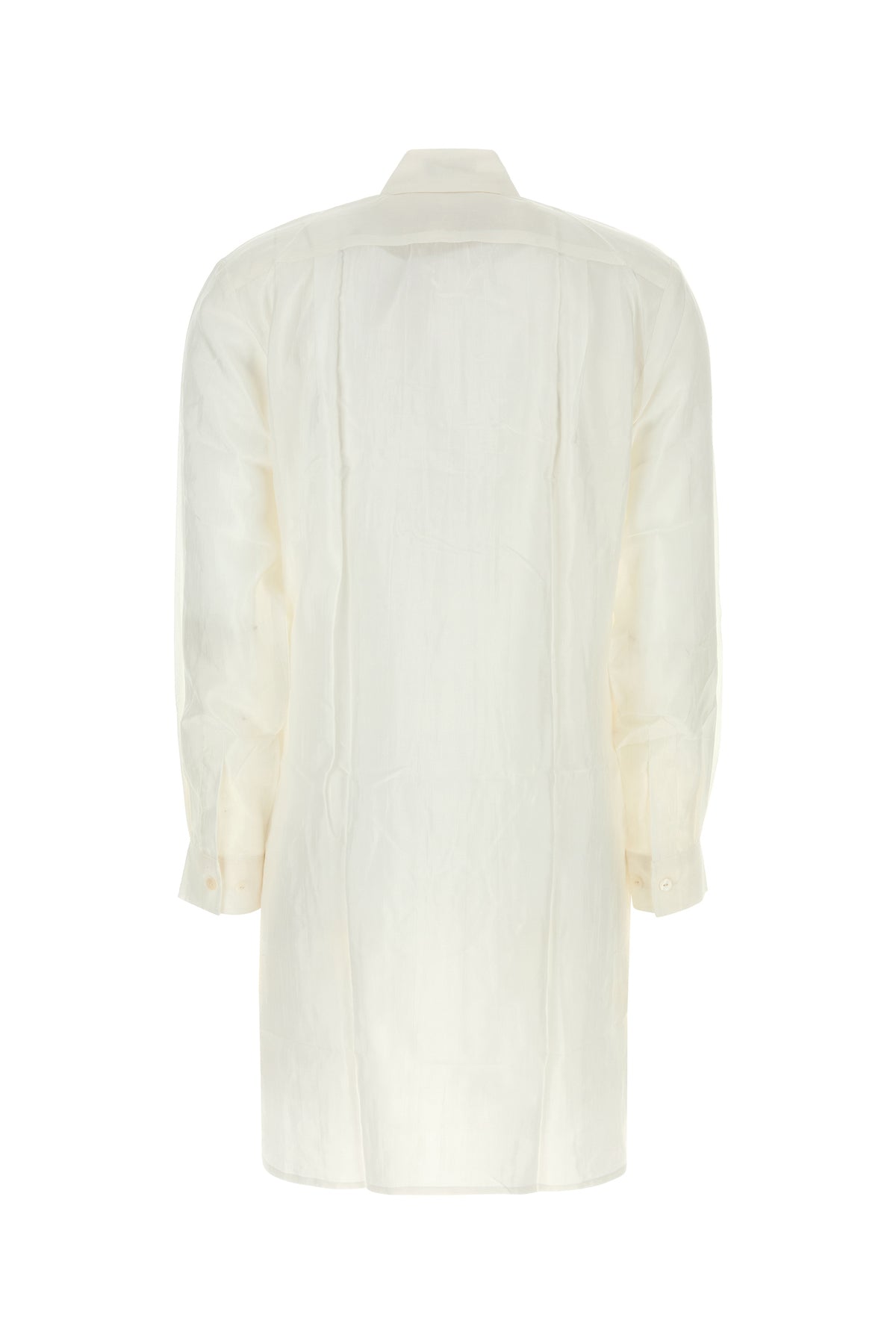 Shirt dress realized in pure silk characterized by short-pointed collar