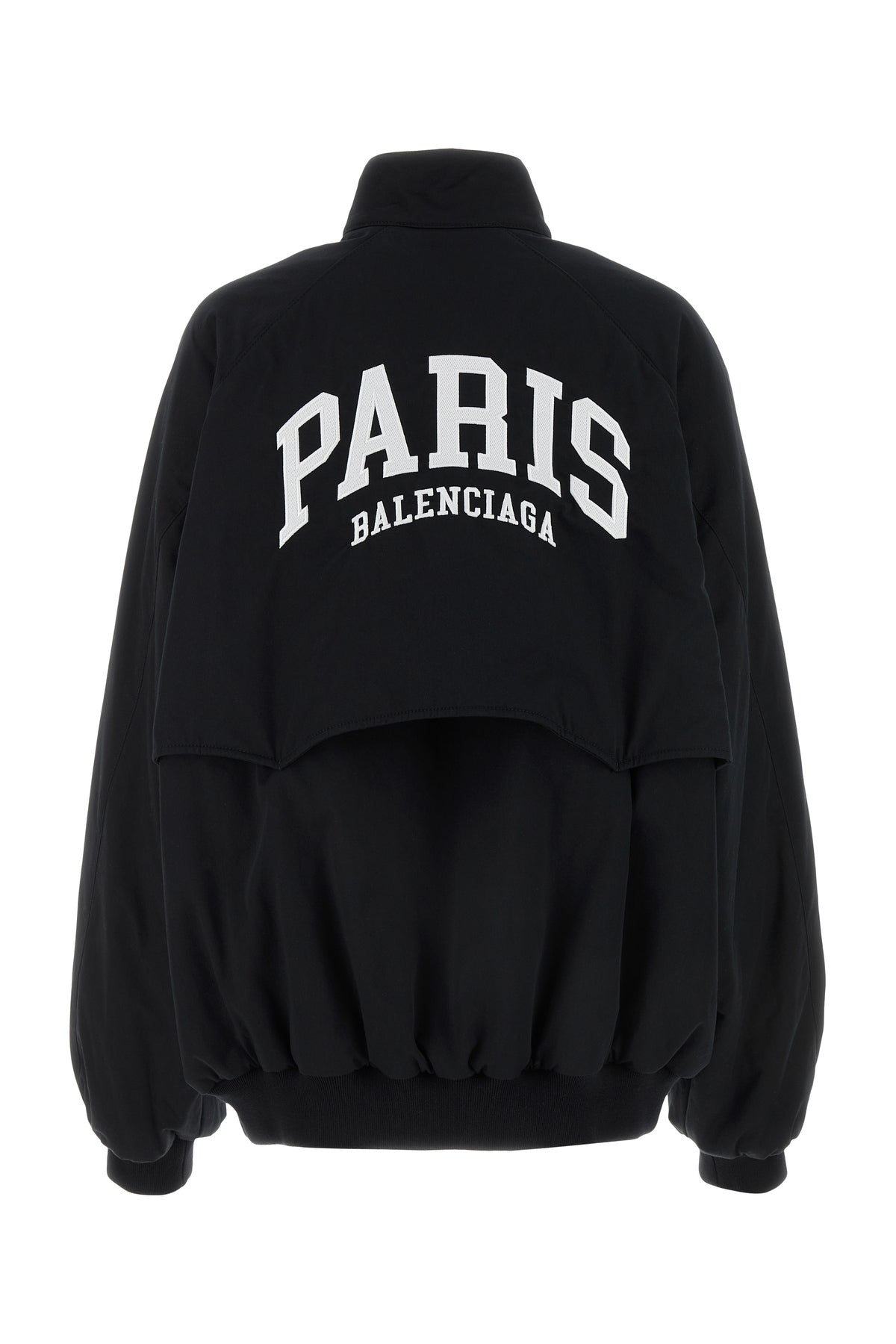 Slightly padded oversize jacket realized in pure cotton characterized by Balenciaga Paris embroidery on the chest and at the back.