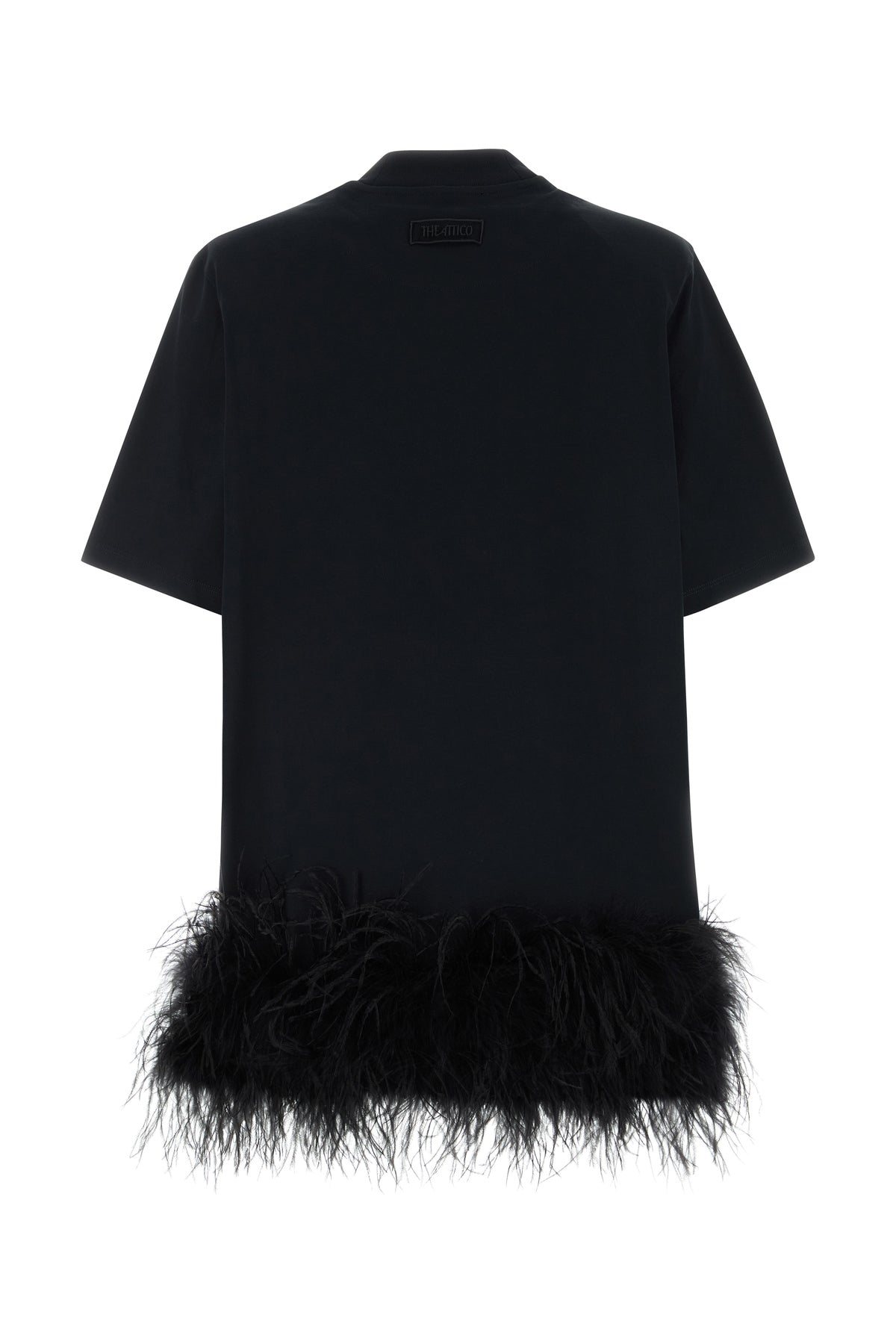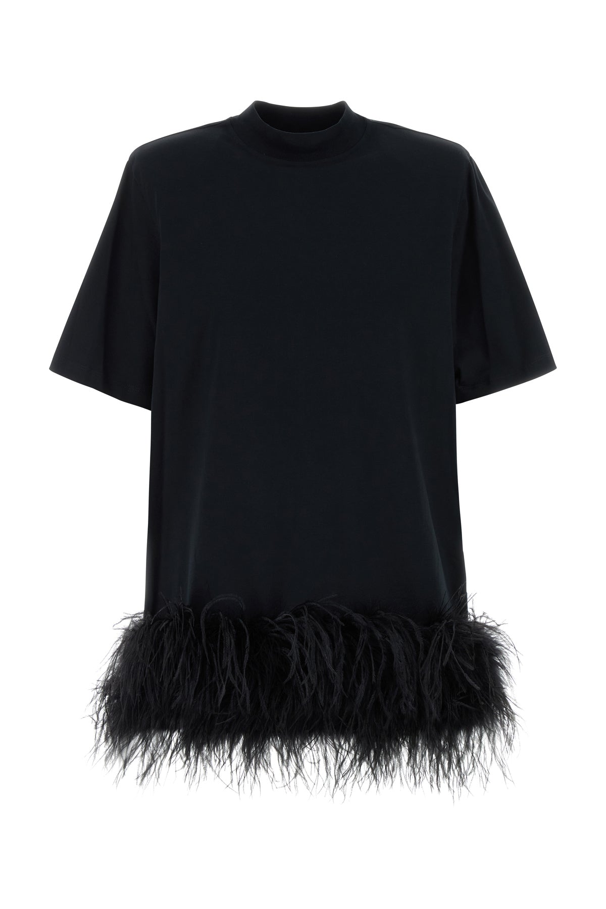 T-shirt dress realized in pure cotton enriched by tonal feathers insert on the hemline and logoed label at the back.