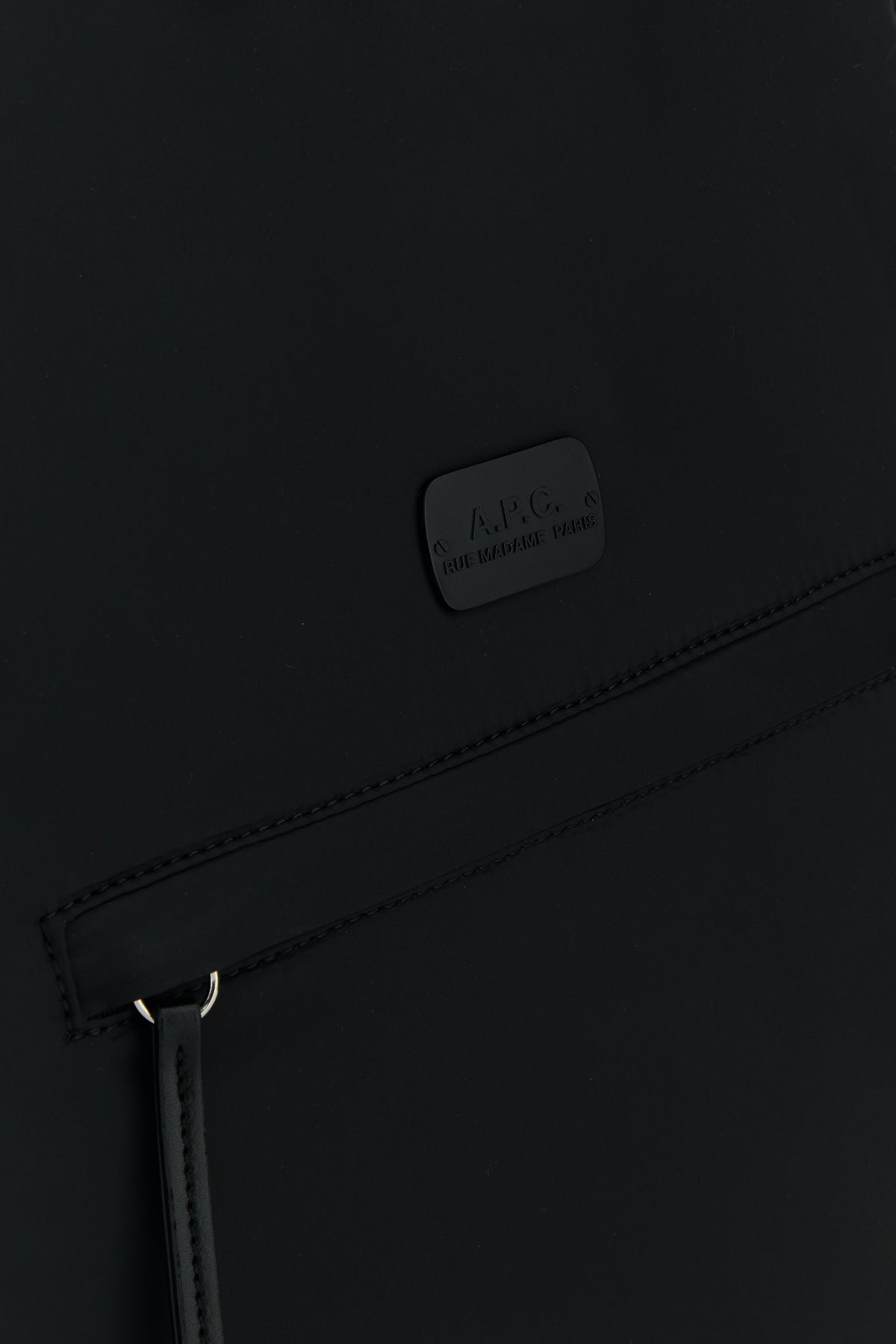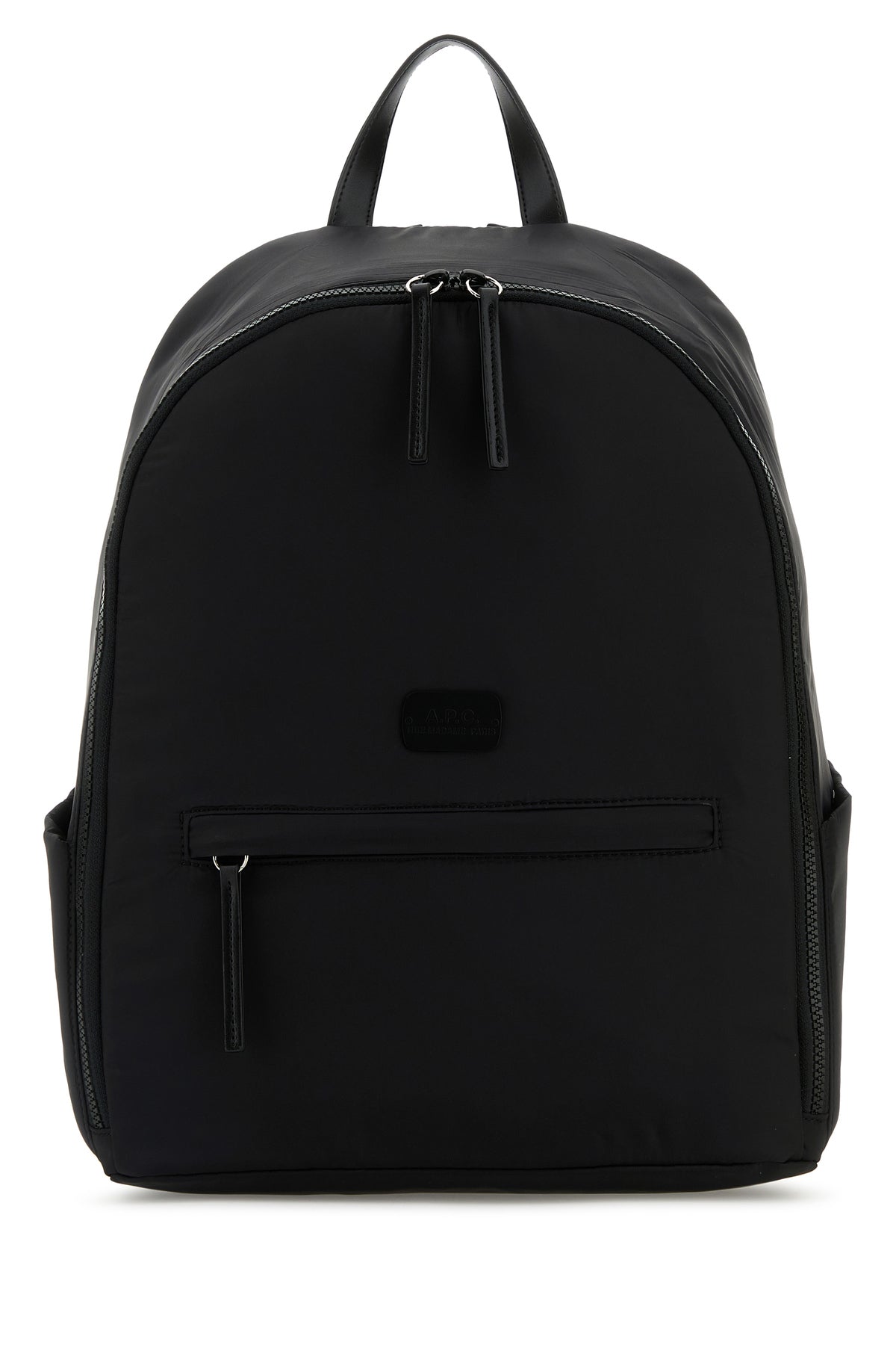 Backpack realized in fabric enriched by logoed metal plate a the front.