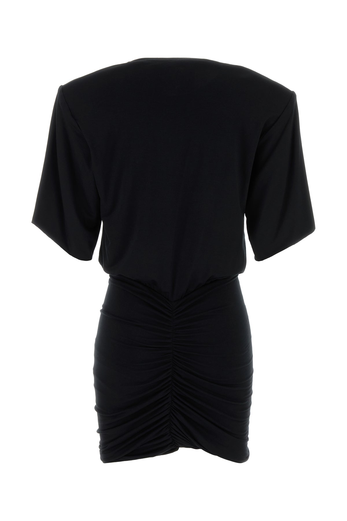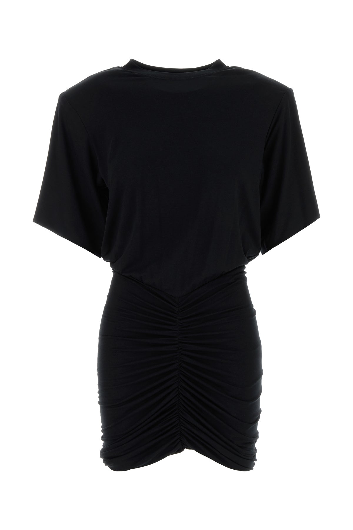T-shirt mini dress realized in viscose and silk jersey characterized by gathered skirt.