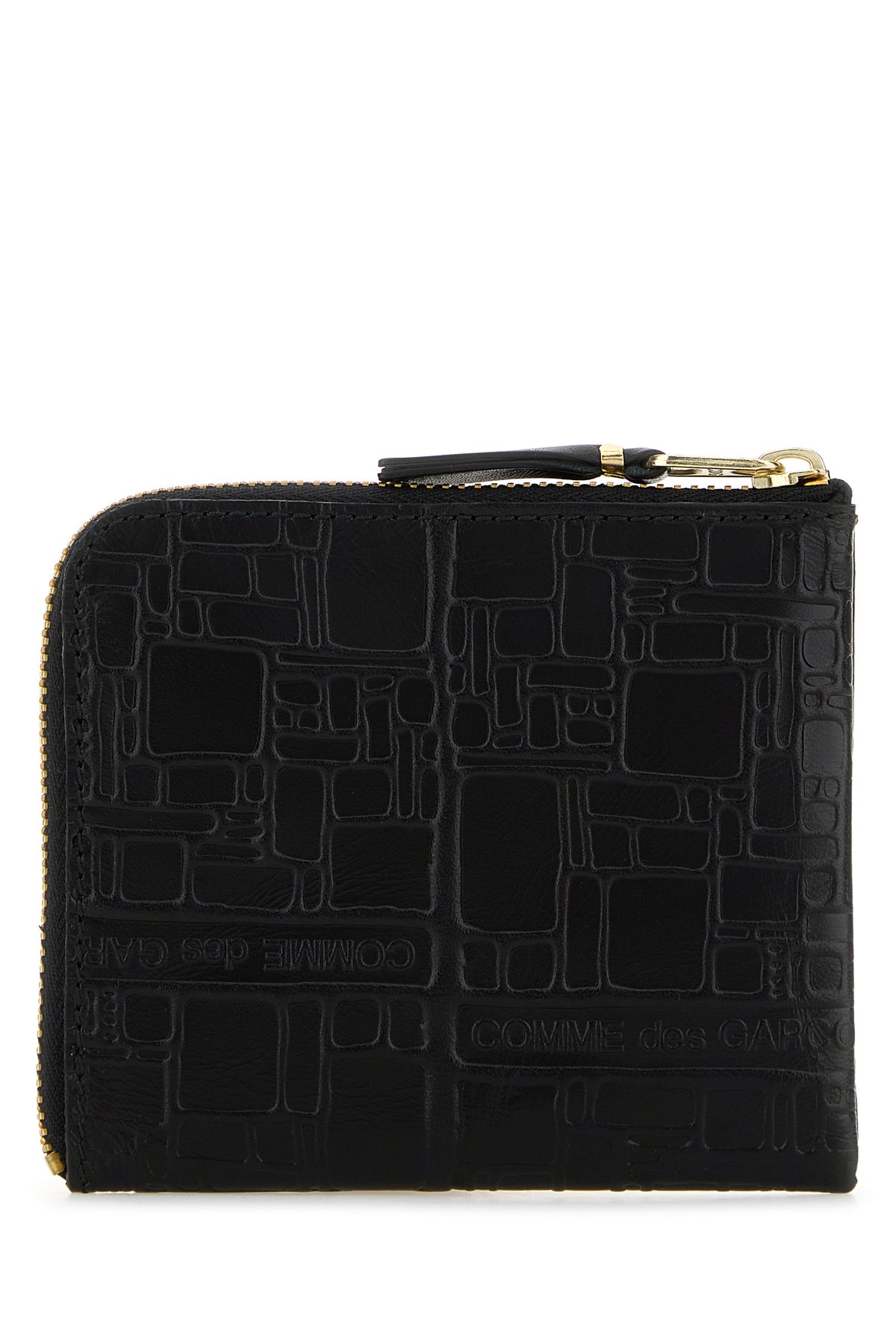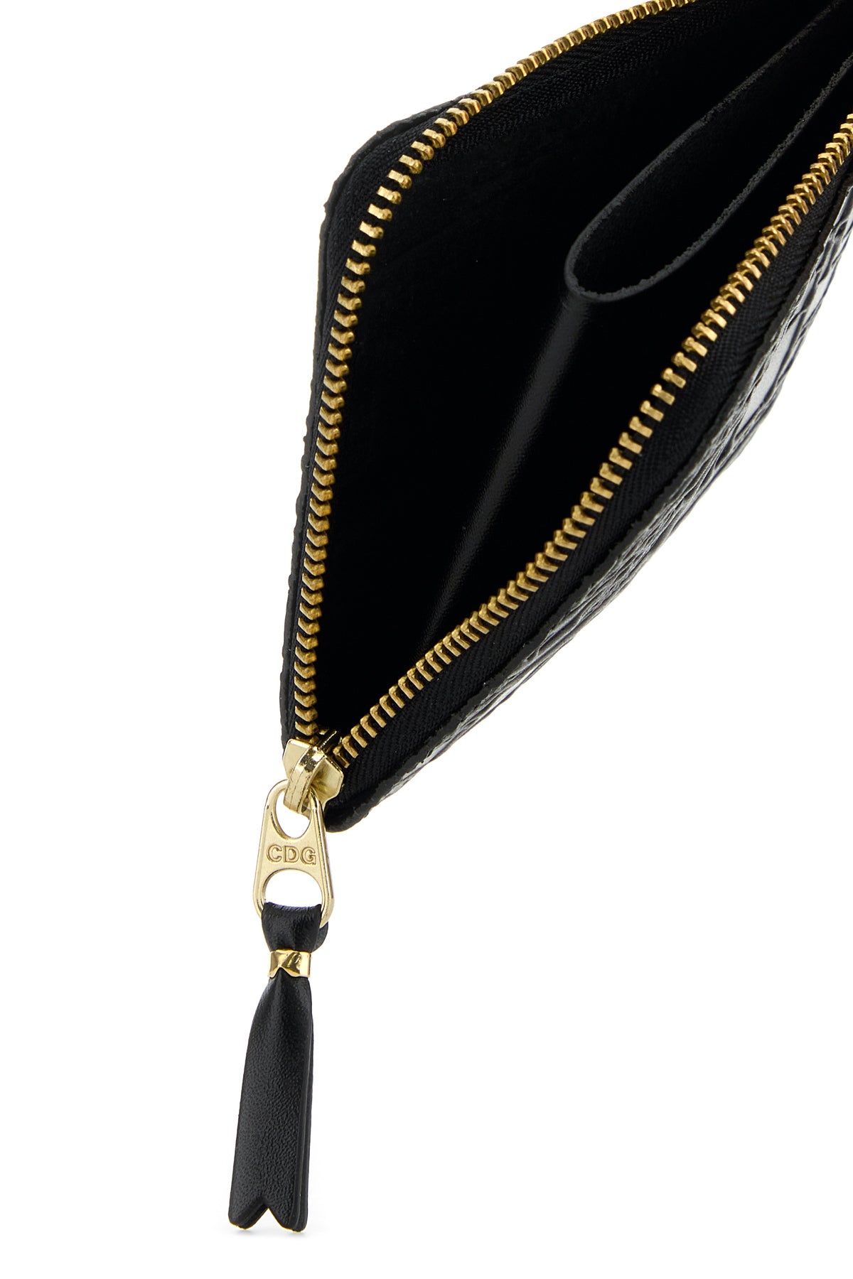 Card holder realized in leather characterized by peculiar logoed motif in relief on the entire surface.