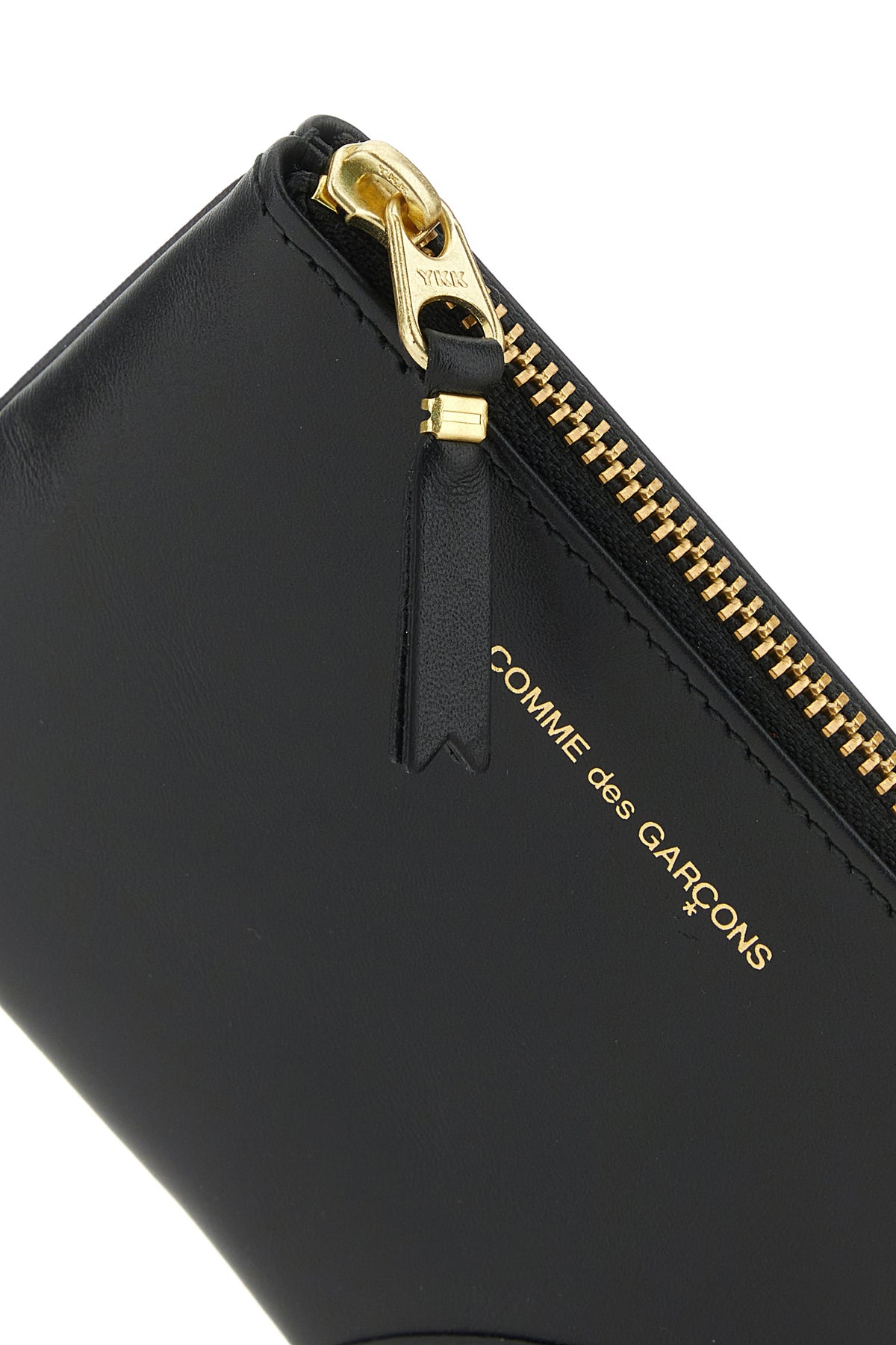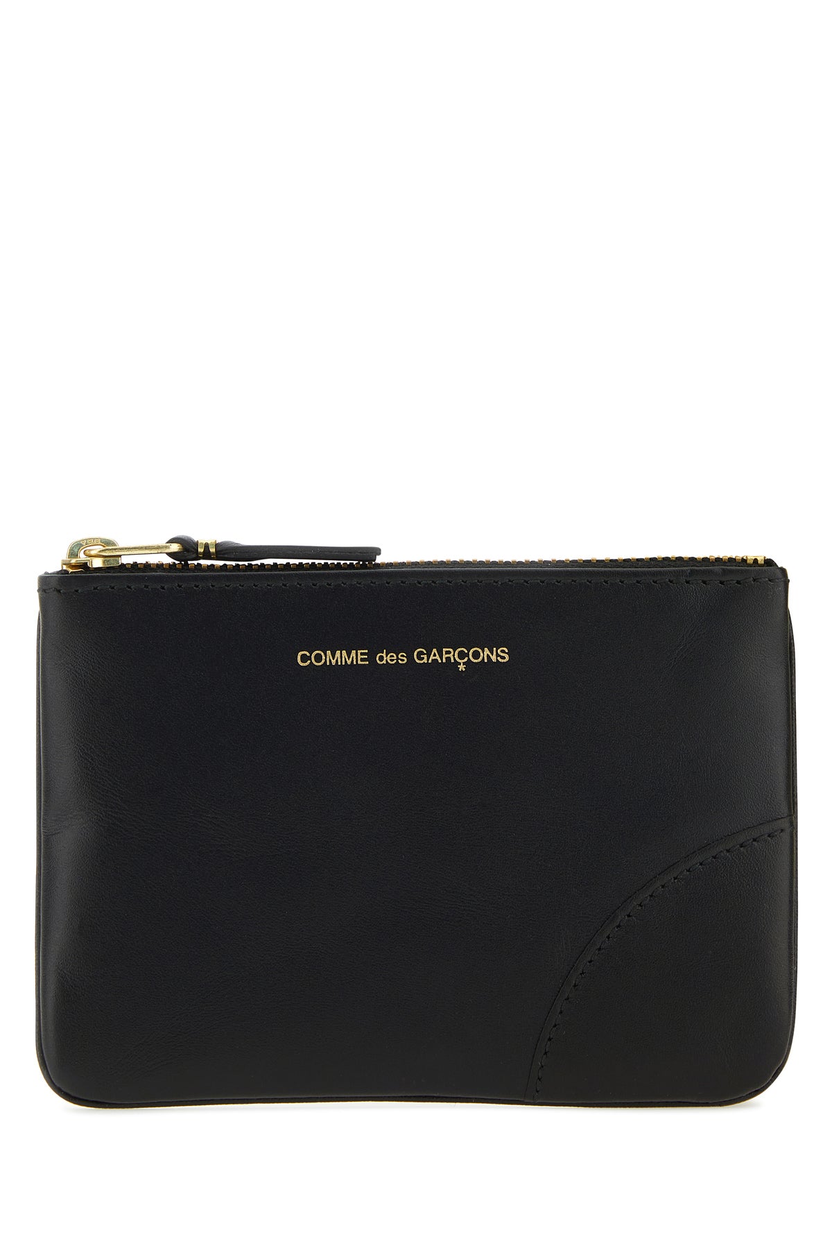 Coin case realized in smooth leather characterized by contrasting printed logo at the front.