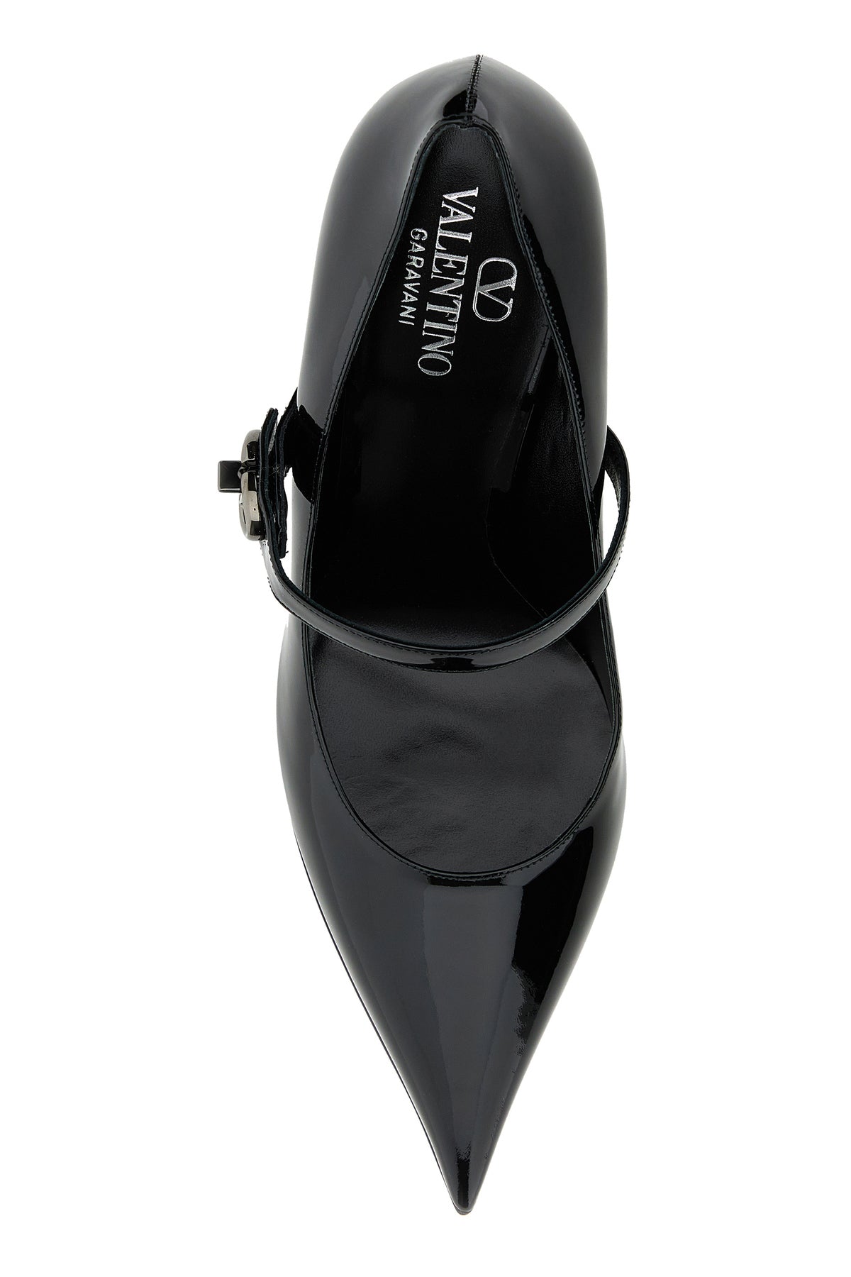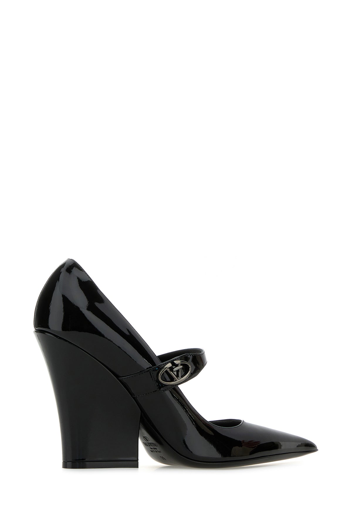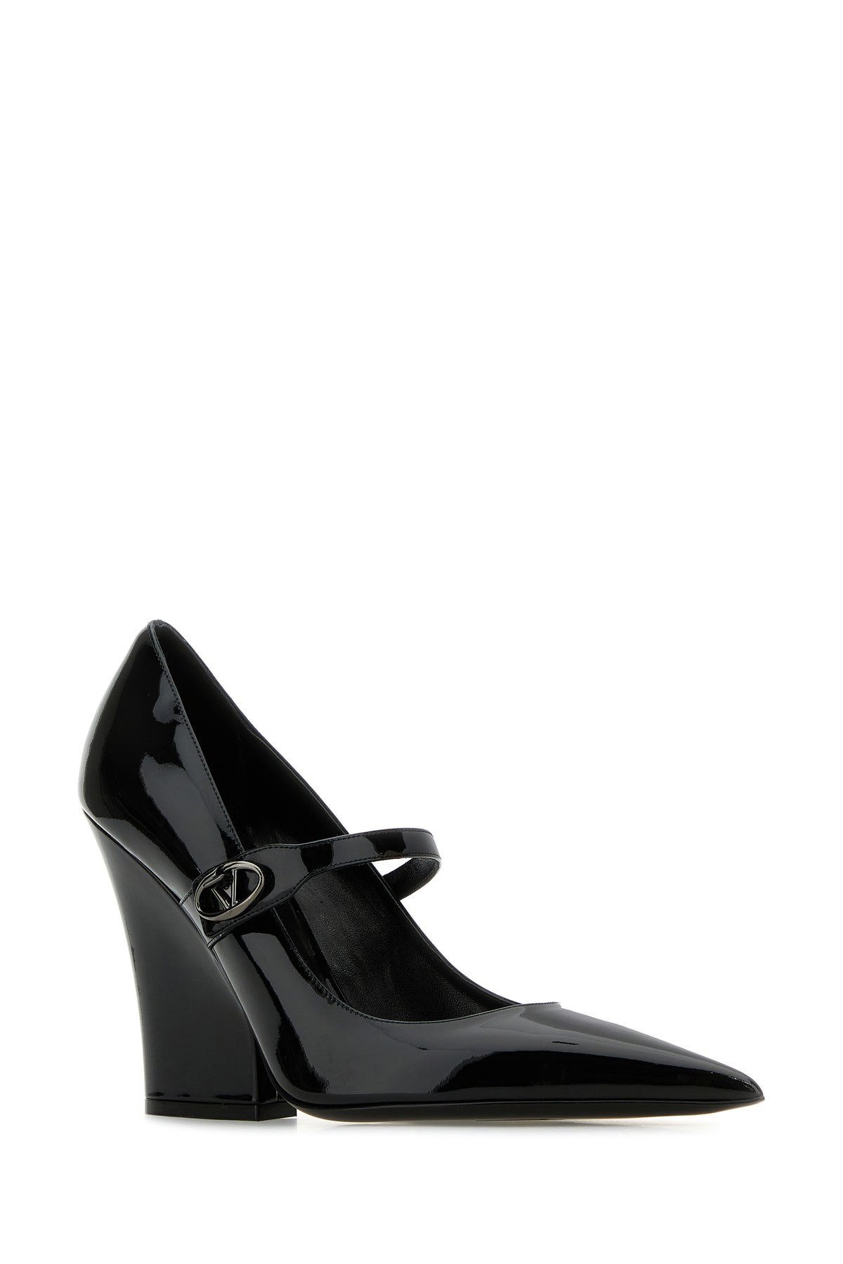 Pumps realized in patent leather enriched by VLogo Signature metal detail on the side.