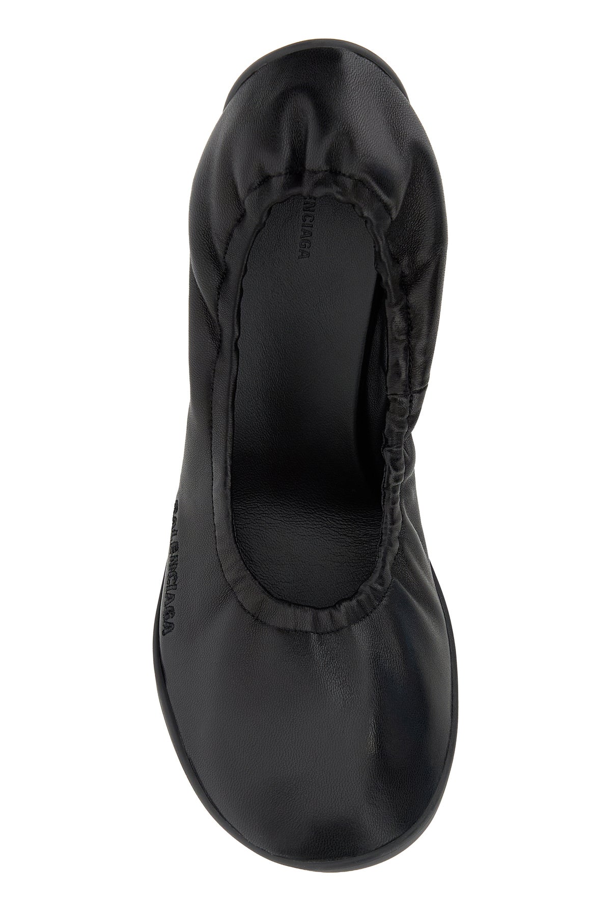 Pumps realized in shearling leather characterized by embossed logo at the back.