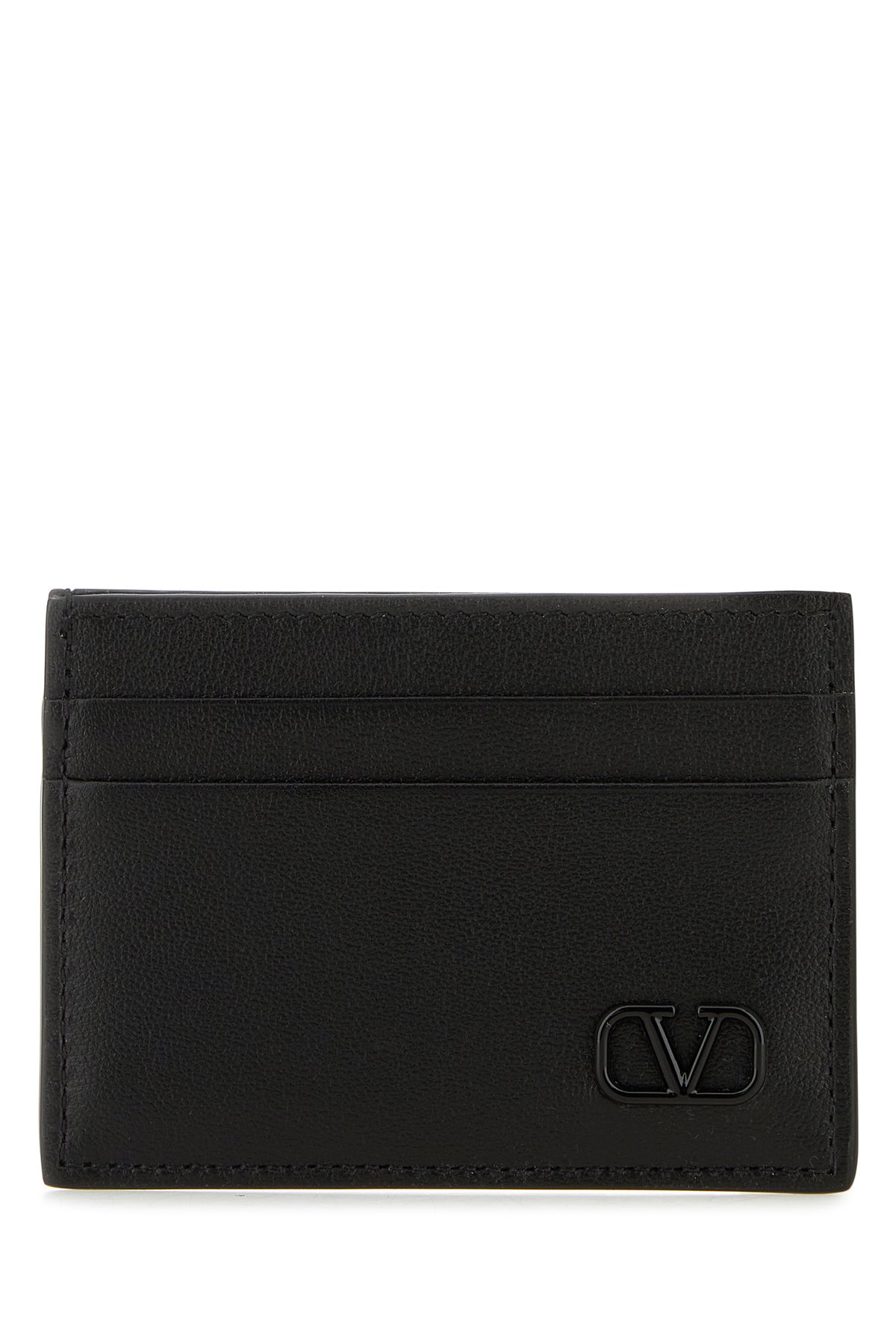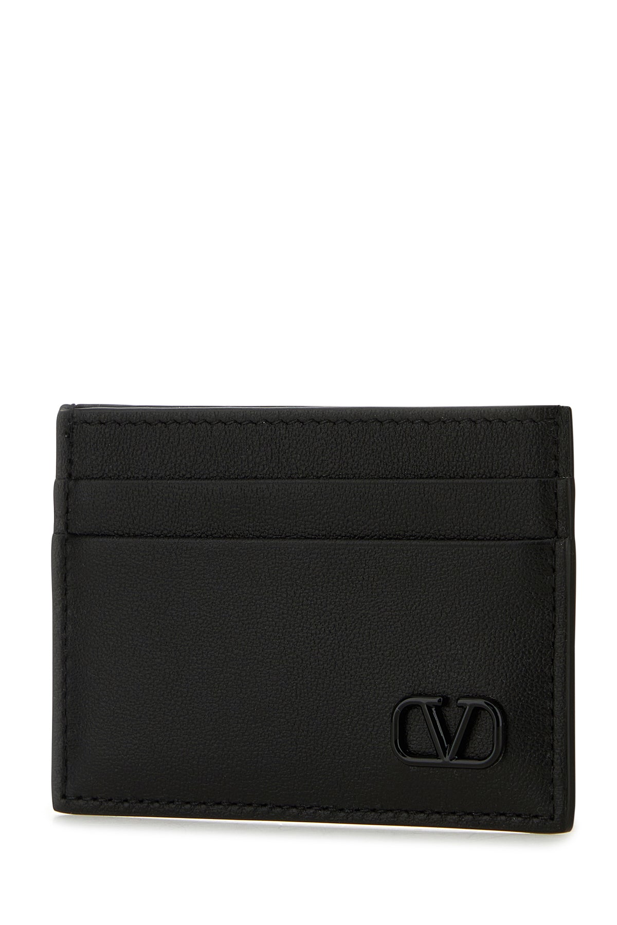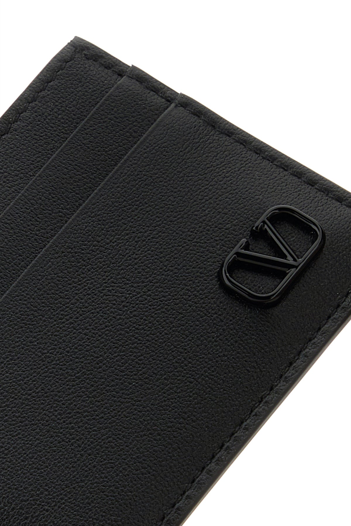 Card holder realized in pebble leather enriched by enameled metal VLogo detail a the front.