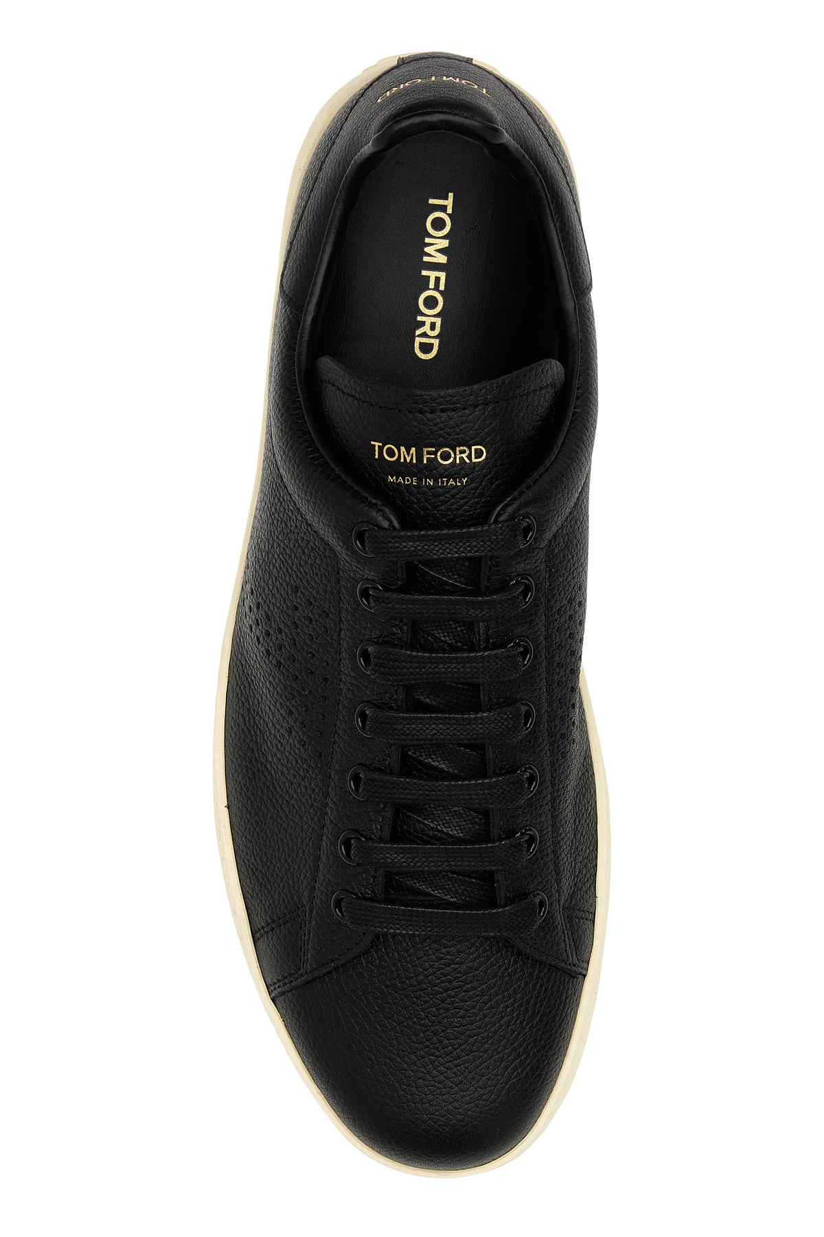 Sneakers realized in pebble leather characterized by perforated logo on the sides and contrasting printed logo on the tongue and on the heel.
