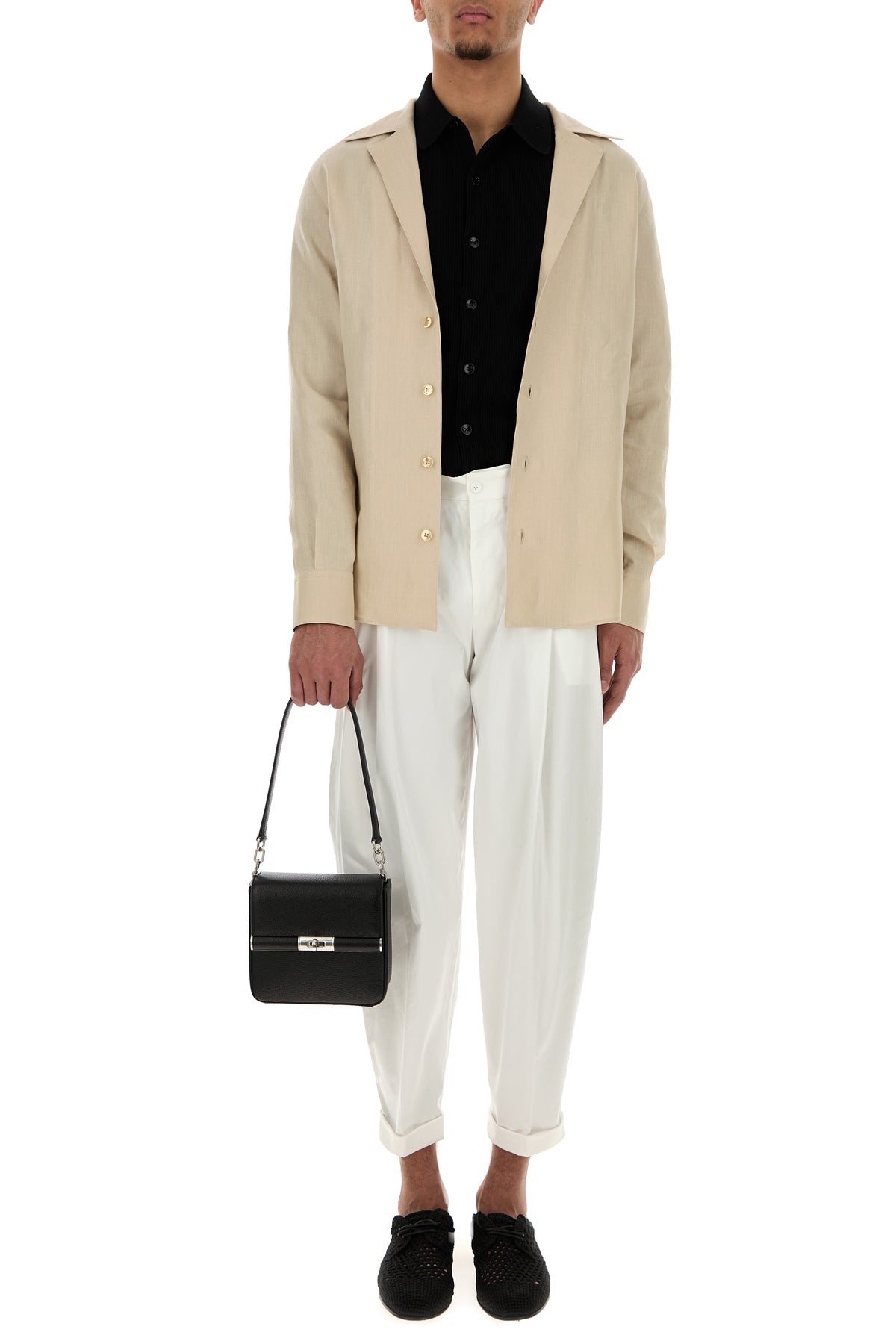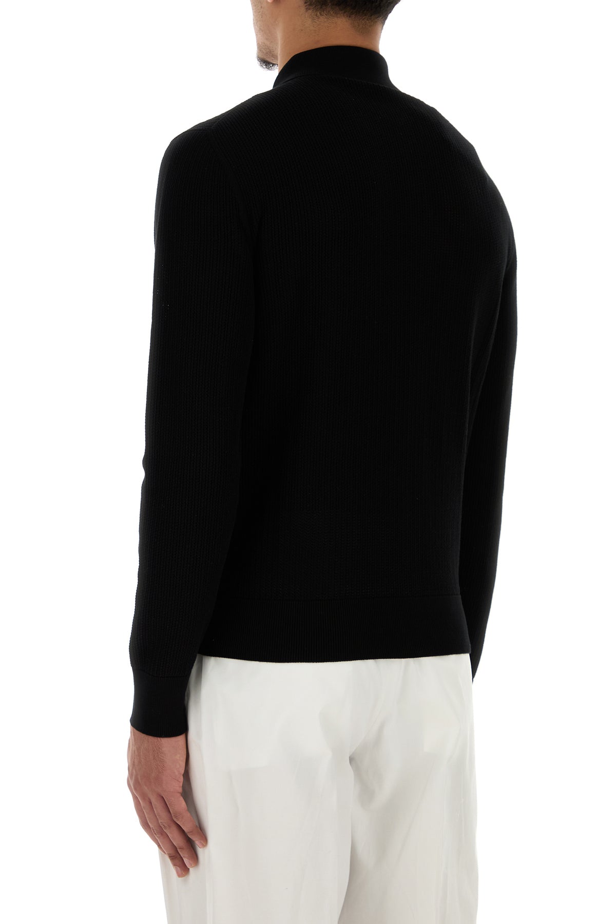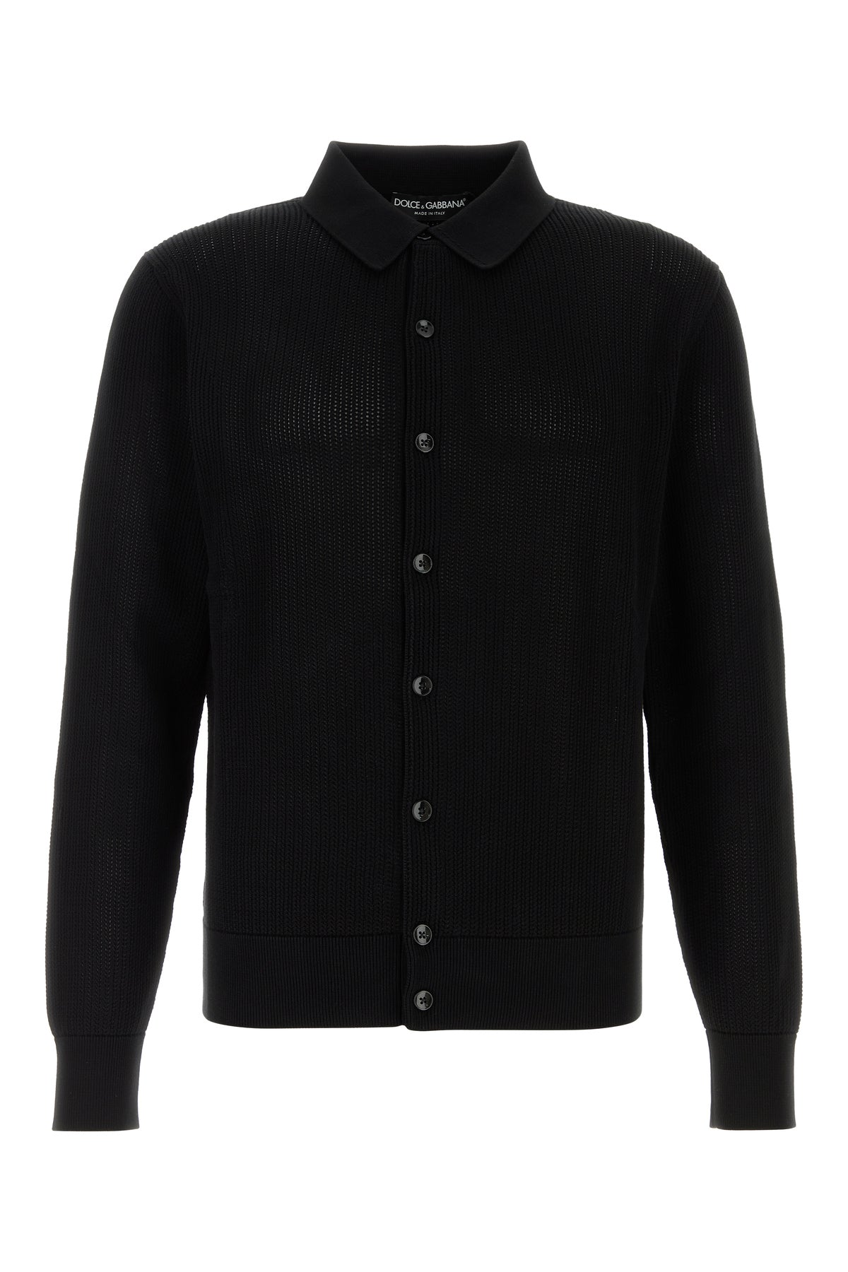 Cardigan realized in pure cotton mesh characterized by collar.