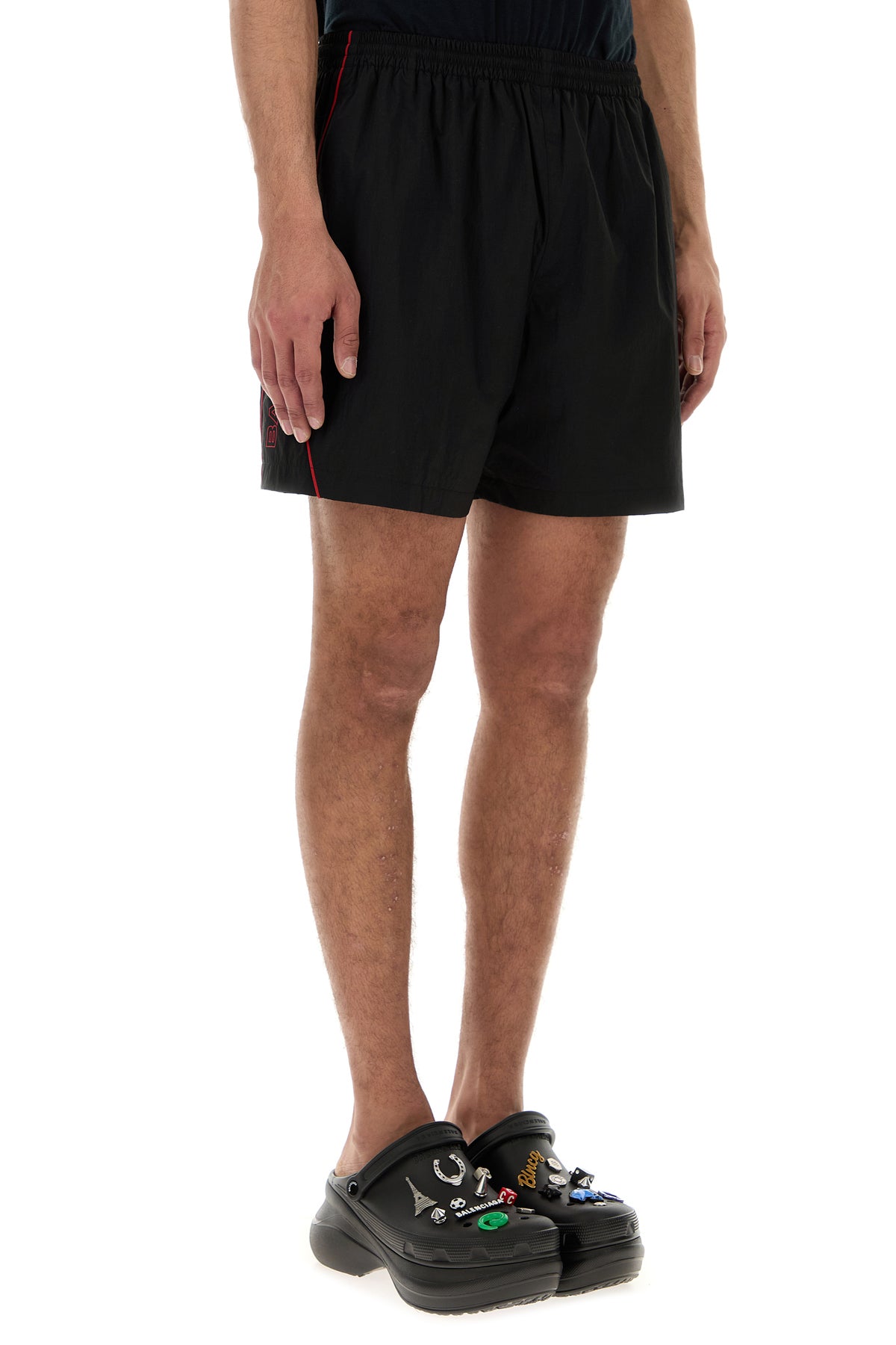 Bermuda shorts realized in nylon characterized by embroidered logo on the sides.