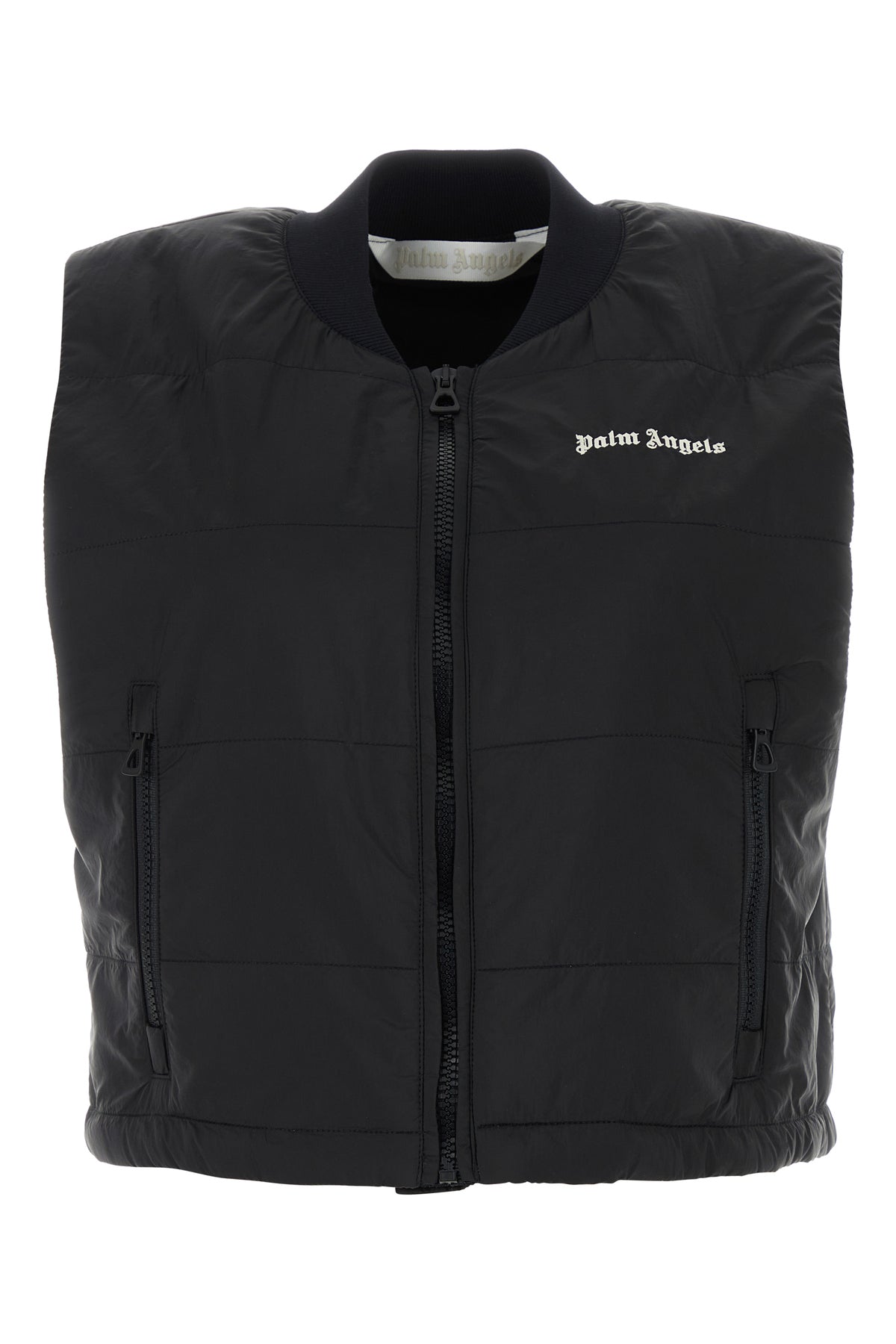 Vest realized in quilted nylon characterized by contrasting embroidered logo on the chest.