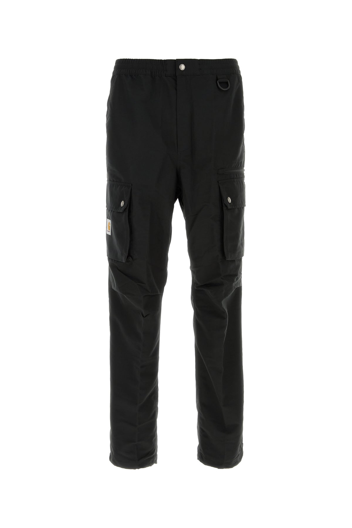 Cargo pan realized in polyester enriched by contrasting logoed label at the front.