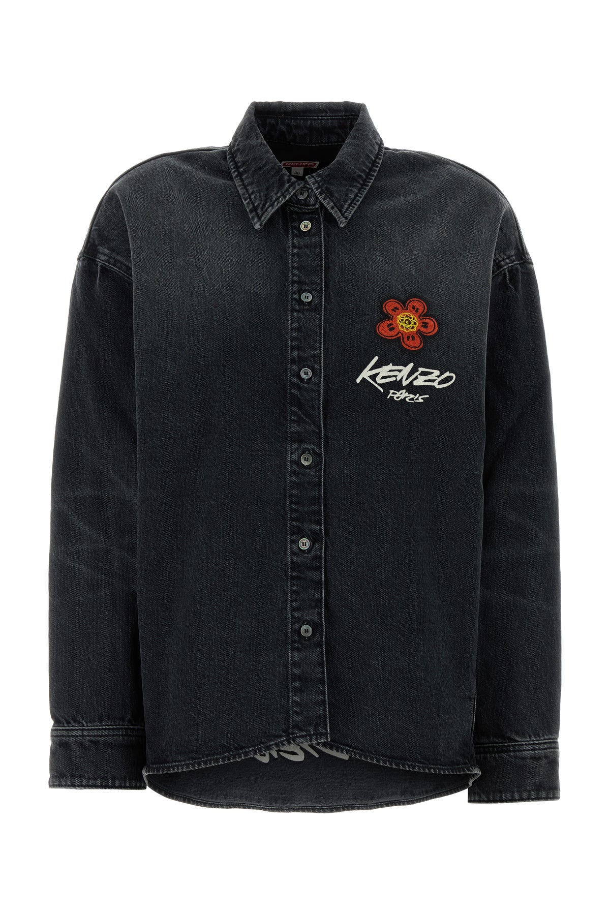 Shirt realized in stonewashed stretch cotton denim enriched by Boke Flower embroidery on the chest and embroidered logo at the back.