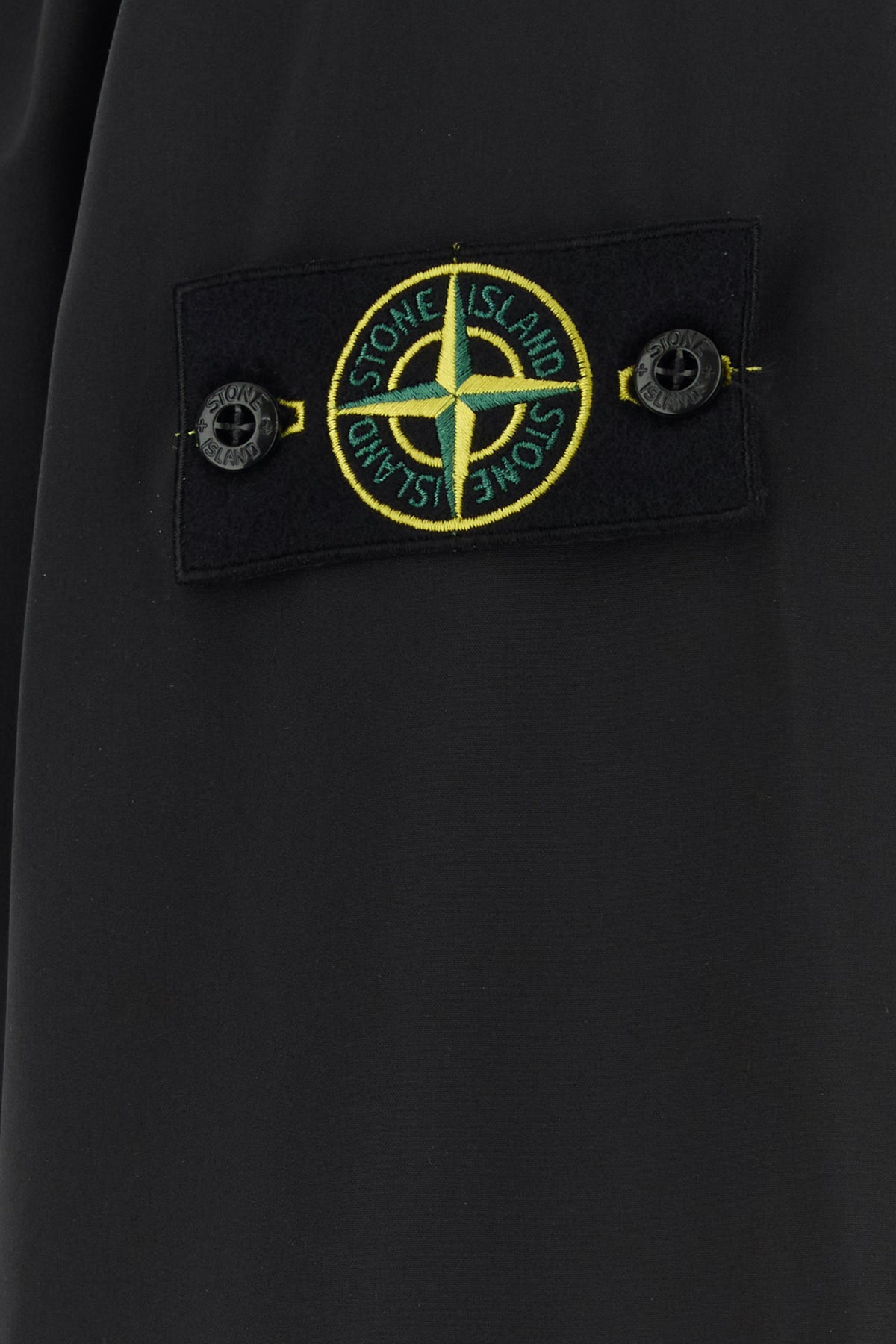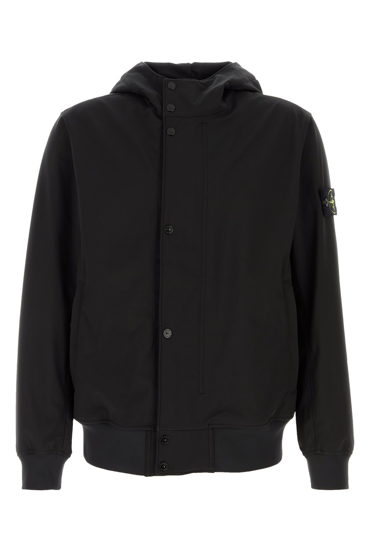 Jacket realized in stretch polyester enriched by detachable logoed label on the sleeve.