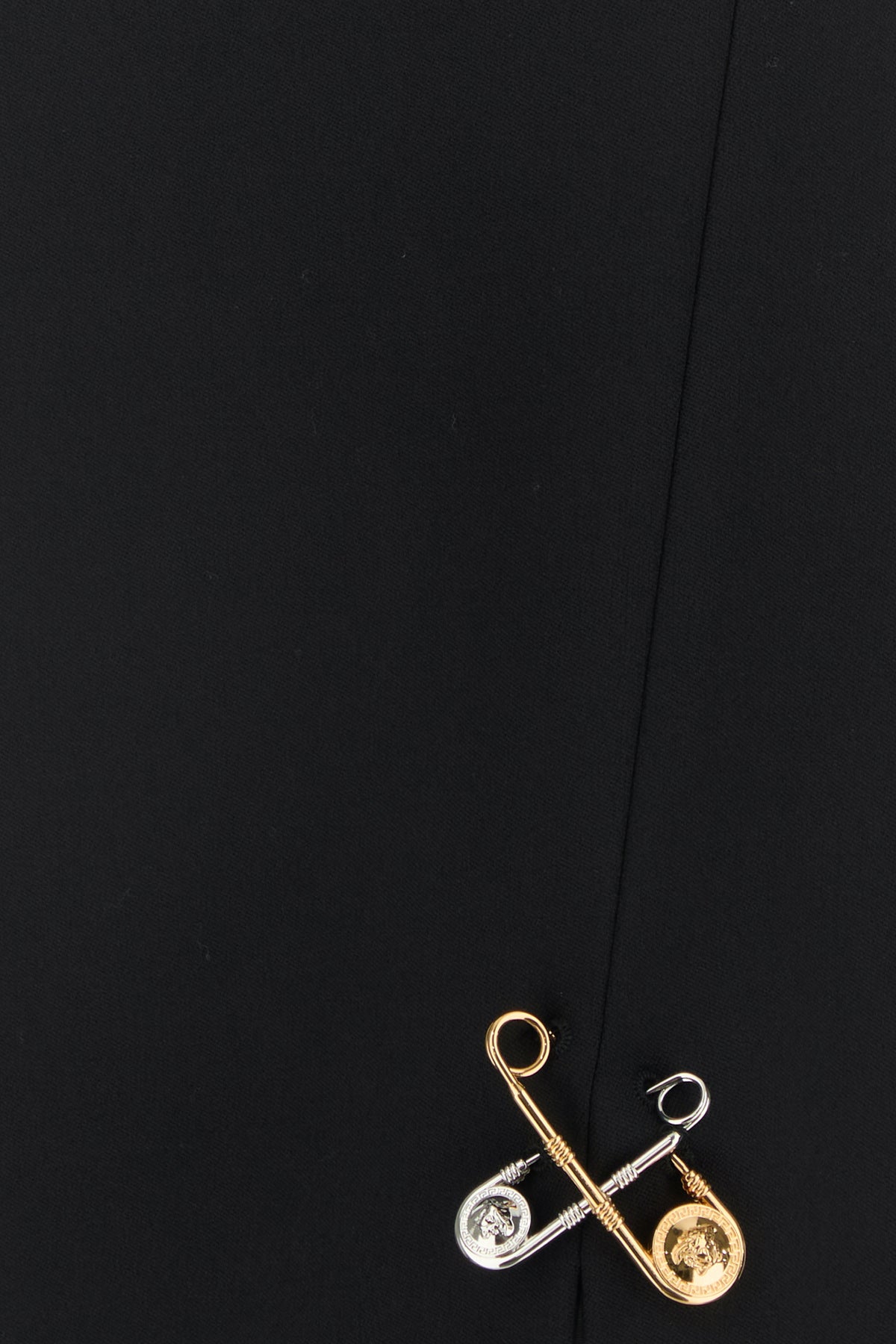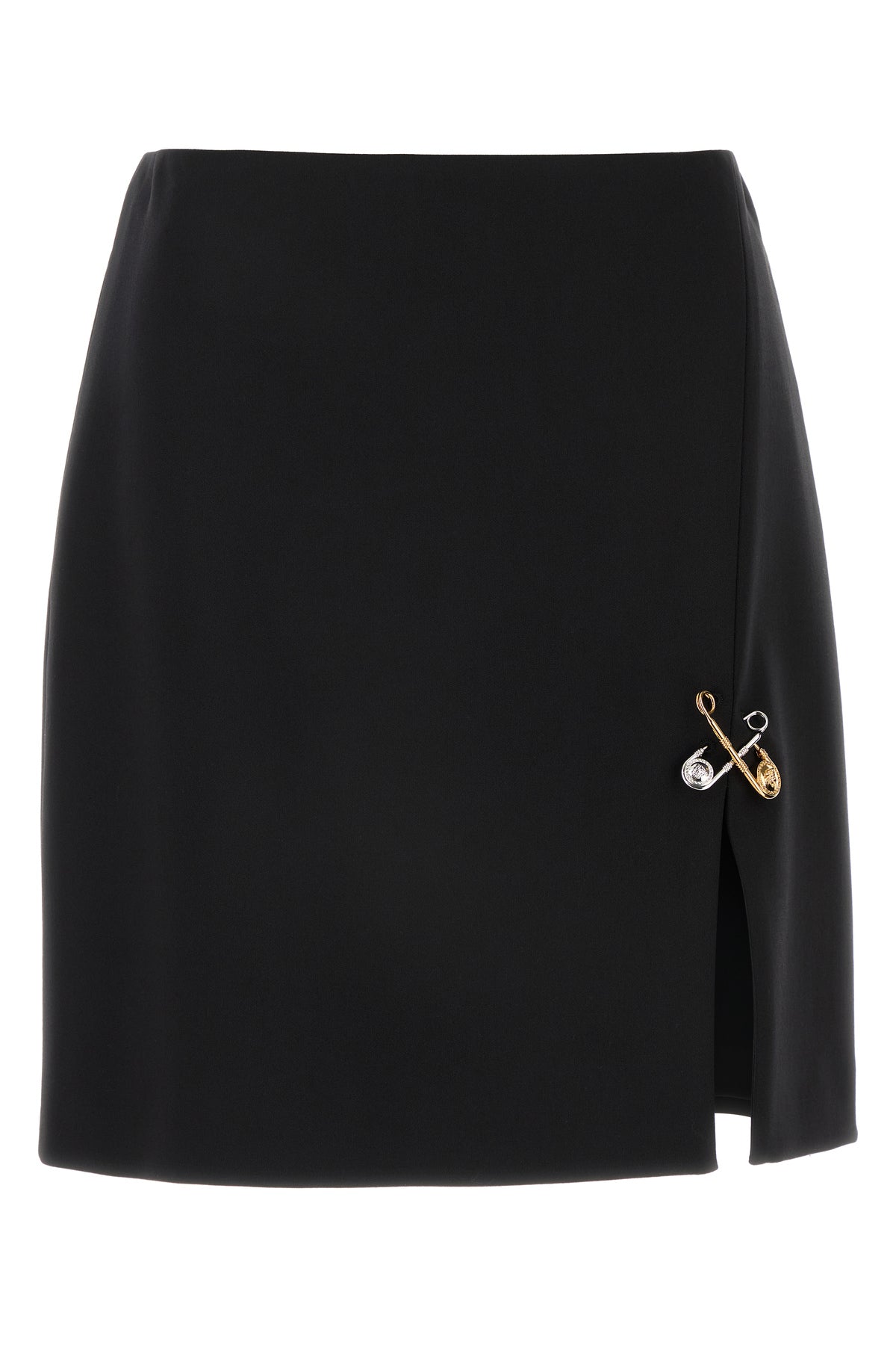 Skirt realized in stretch wool enriched by detachable Safety Pin details at the front.