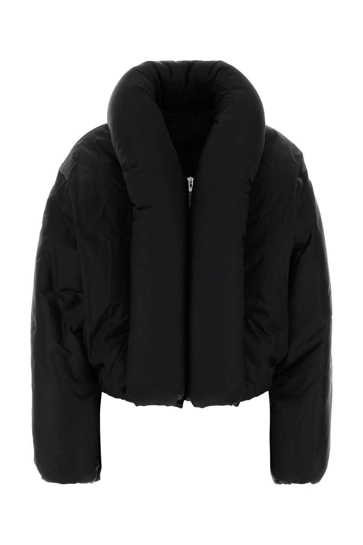 Padded jacket realized in taffeta characterized by maxi collar.