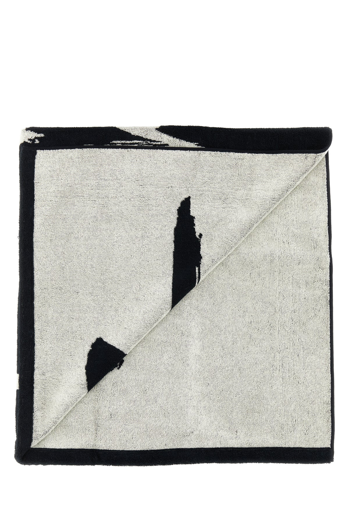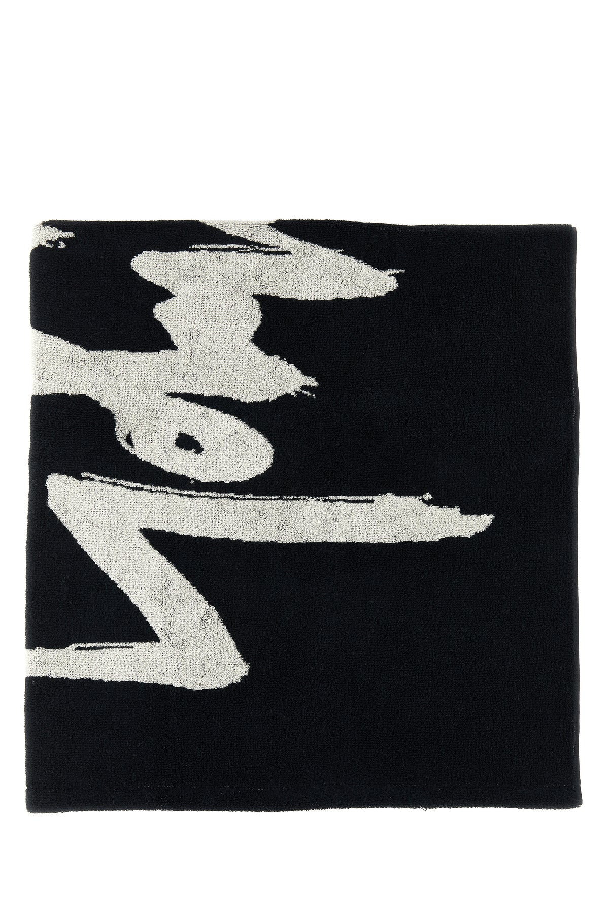 Shower towel realized in pure cotton terry fabric characterized by contrasting printed logo at the front.