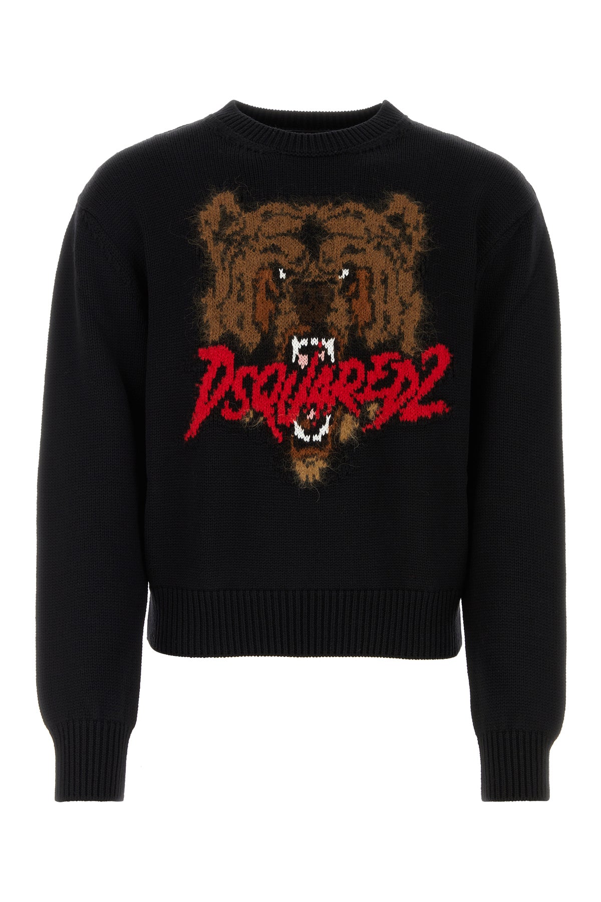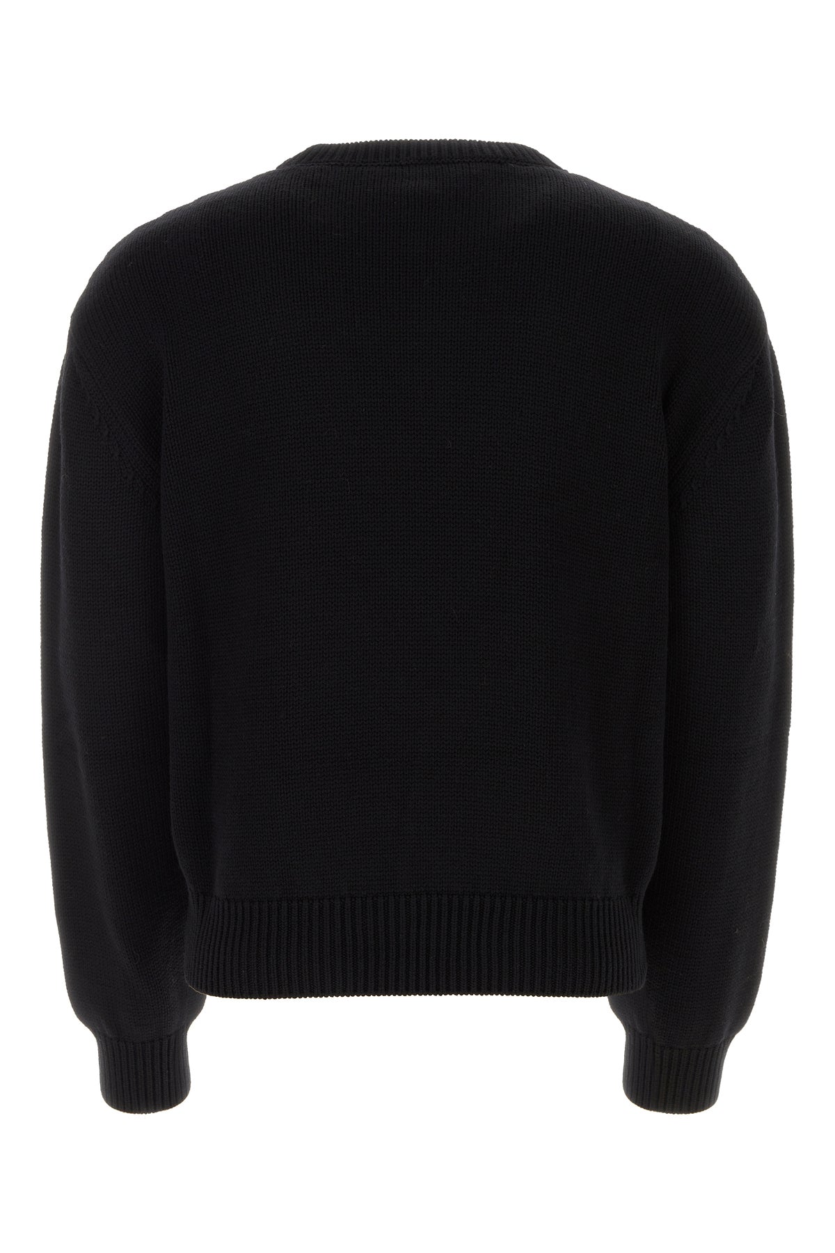 Sweater realized in wool blend characterized by peculiar contrasting logoed embroidery at the front.