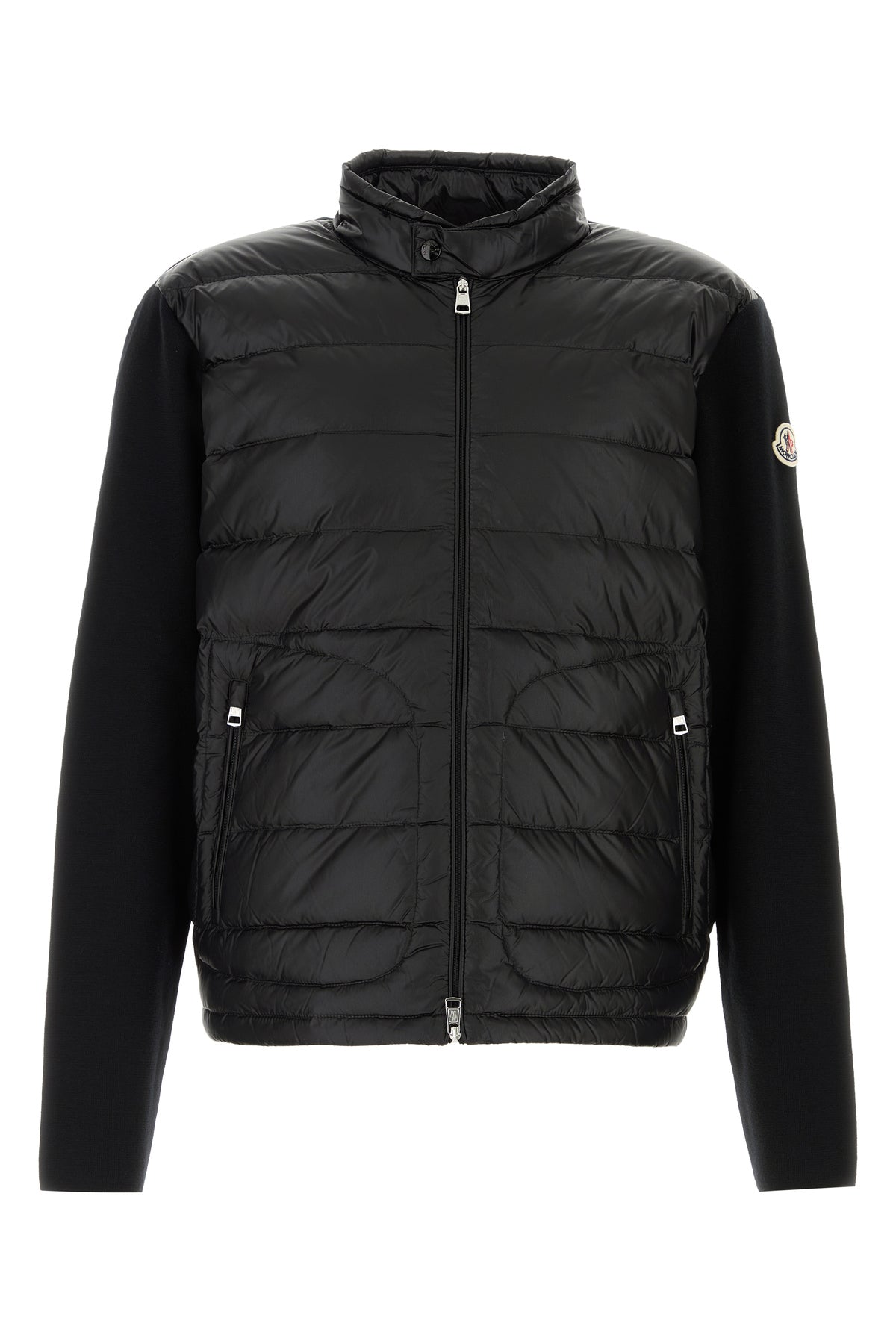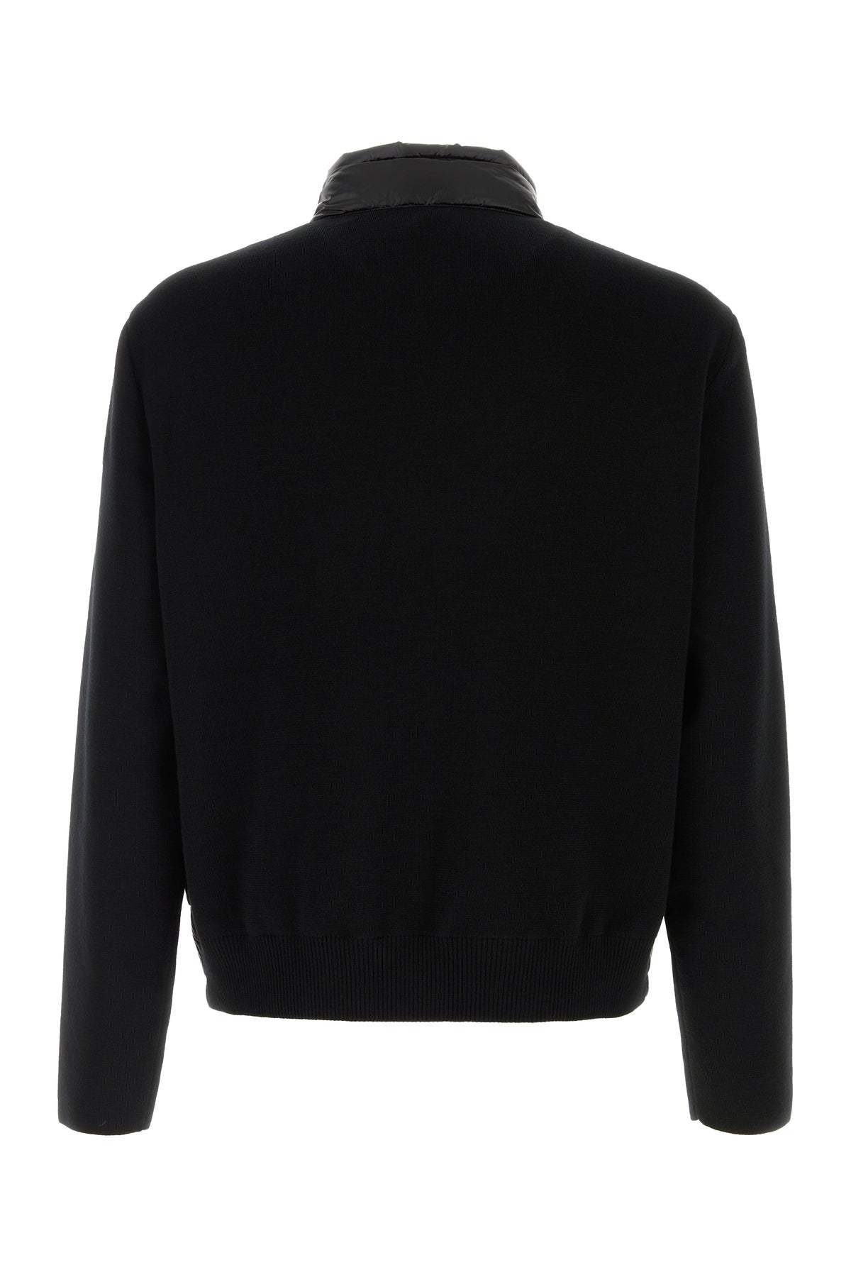 Jacket realized in pure virgin wool with quilted nylon insert at the front enriched by logoed label on the sleeve.